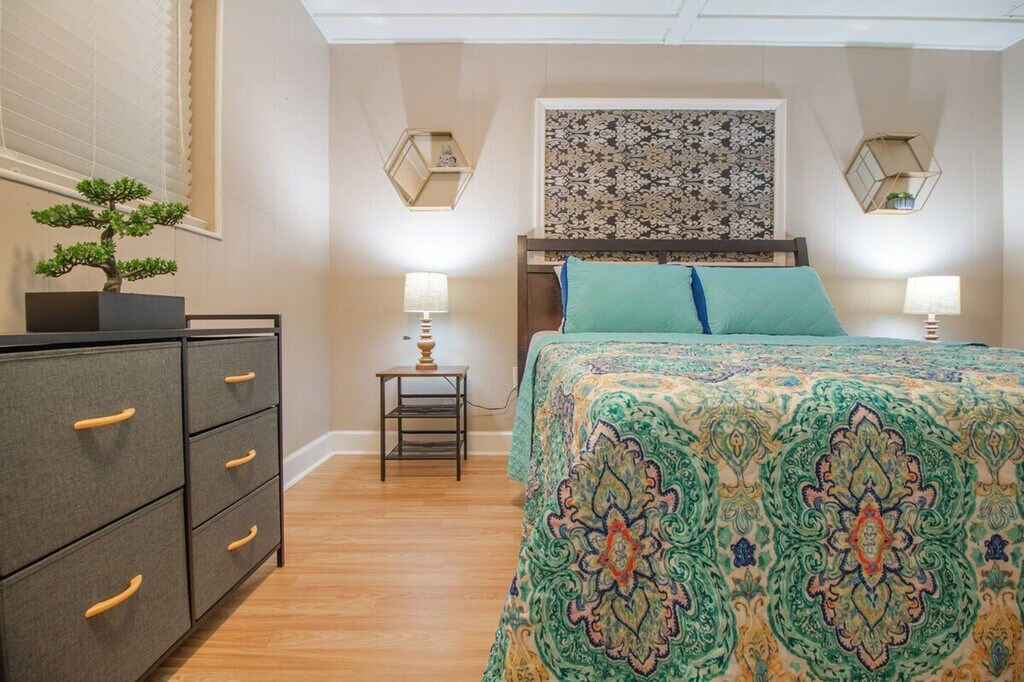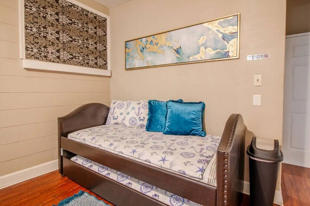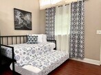 Feel at home in this spacious entire home with 6 bedrooms and 4 full bathrooms. This home features 6 bedrooms, 4 full bathrooms, a front porch with outdoor seating, a living and dining area, a dedicated study/work area, a fully equipped main kitchen with a 4-burner stove, refrigerator, and microwave, a laundry area, and a fenced backyard. There are 4 bedrooms located in the front of the house and 2 bedrooms located in the back of the house, each with its own private bathroom and kitchen with a 2-burner stove. Your payment covers utilities, high-speed Wi-Fi, regular maintenance, and pest control, so you can enjoy a hassle-free stay. Up to 4 dogs are welcome per stay, but all dogs must be declared in advance to ensure a smooth check-in and proper accommodations. Centrally located, this home is just minutes from major attractions like Universal, Disney, and shopping plazas. Street parking is available directly in front of the house for compact vehicles only. This property is a triplex with completely independent entrances. As part of a triplex, you may hear some noise from neighboring guests. Please be mindful and keep noise levels low from 8:00 p.m. to 8:00 a.m. Check-in is at 4:00 PM and check-out is at 10:00 AM. Smoking inside the property is strictly prohibited and will result in an automatic complaint. Please respect quiet hours after dark to ensure a peaceful environment for all guests and neighbors. House-trained and non-aggressive dogs only are welcome. A crate is required if dogs are left alone indoors, and a leash is required when outside. No pets are allowed on furniture, so please bring your pet’s bedding. Clean up after your pets both indoors and outdoors. Lock all doors when leaving the property. Windows do not open—please do not attempt to force them. Do not move furniture. If necessary, return everything to its original position before check-out. Our homes are treated regularly, but insects and wildlife are common in Florida. Keep doors closed to minimize their presence. A security camera is installed outside near the entrance for everyone’s safety. It does not record inside the home and complies with privacy policies. Please don’t unplug or tamper with it during your stay. [SI]