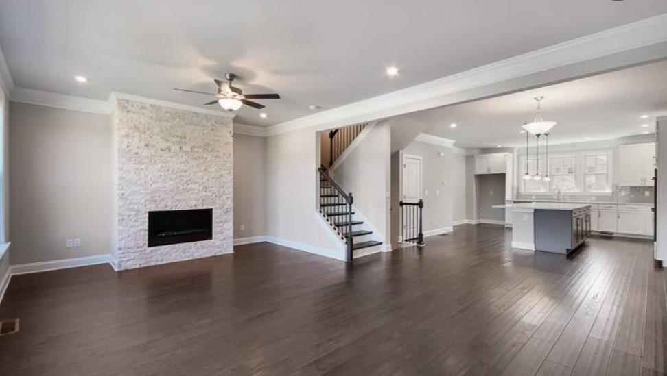 Welcome to this spacious three-story townhome featuring 4 bedrooms and 3 full bathrooms. The open-concept main level is perfect for entertaining,with a gathering room that flows seamlessly into the chef’s kitchen. This upgraded kitchen includes quartz countertops,a large island with sweeping views of the dining and living areas,modern handrails with wood stairs,upgraded cabinets,and a cozy fireplace to anchor the space. Upstairs,the owner’s suite impresses with a tray ceiling and a spa-style bath complete with dual vanities,an oversized tile shower,and a walk-in closet. Two additional bedrooms and a full bathroom complete the upper level. The terrace level offers a private bedroom and full bath—ideal for a guest suite,home office,or media room. The two-car rear-entry garage boast a community swim/tennis/playground amenities,and thoughtful modern upgrades throughout. Landlord welcome to a tenant with a minimum of 3 months. Conveniently located with easy access to I-85 and I-285.