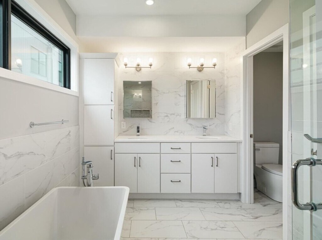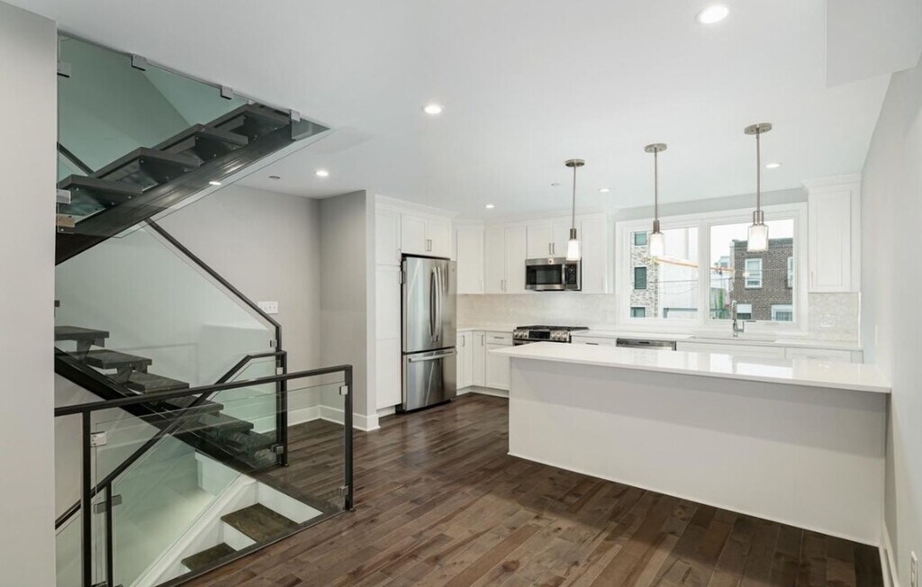 Gorgeous 3 bed, 2 full and 2 half bath new construction townhome in Point Breeze with its own attached 1-car garage and tech features including a video doorbell and smart thermostats! Enter into a breathtaking living room with dramatically high ceilings and hardwood floors that is sure to impress! Your 1-car garage and access to the fully finished basement are downstairs, while upstairs you will make your way to the gourmet kitchen and dining area that overlook the living room. The kitchen comes fit with a gas range, dishwasher, bar counter seating, and stylish white cabinetry for your cooking needs. Upstairs are two large bedrooms with great closet space, a laundry closet, as well as a spacious full bath with a tiled shower/tub. The top level of the home boasts the beautiful primary suite, which includes a walk-in closet, a huge bedroom with oversized windows, as well as a luxury bath with a double sink vanity, soaking tub and glass shower. Last but not least, there is a powder room and mini fridge that you can stop by at before heading up to the incredible roof deck with great city views! Don't miss this expansive, high-end home nestled on a quiet cobblestone street before it is too late! Garage