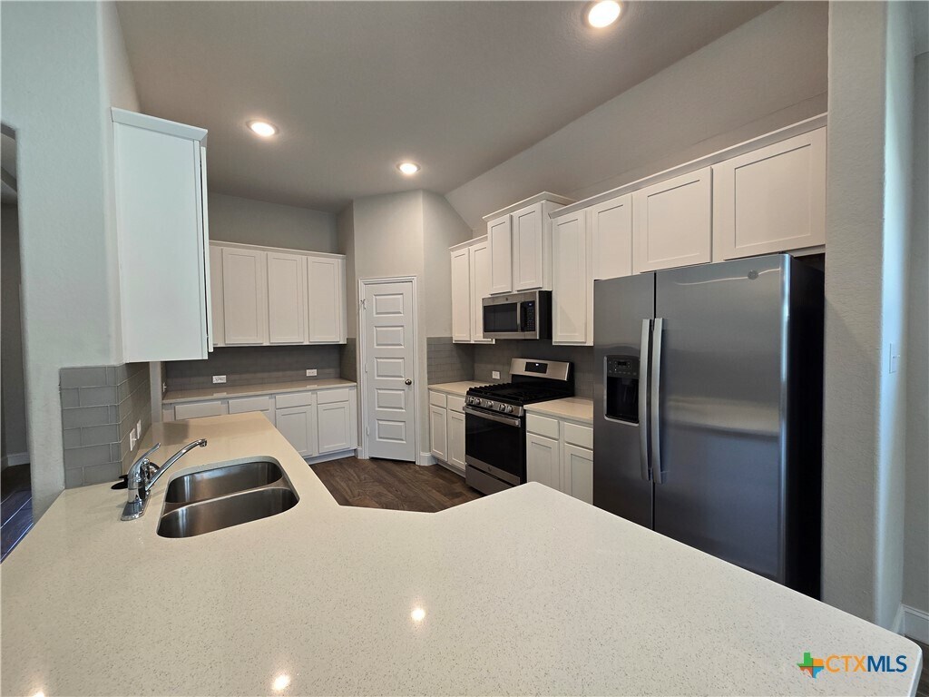 3/2/2 House with Office / Flex Room. 1 mile to Gruene. 4.7 miles to downtown New Braunfels. Flooring is a mix of woodlike tile,& carpet. Kitchen Includes: fridge,gas stove /oven range,dishwasher,built in microwave,breakfast bar,pantry,granite counter tops,& recessed lighting. Other Features: ceiling fans,laundryroom inside,walk in closests,walk in shower,double vanities,shower/tub combo,garage door opener,sprinkler system,covered back patio,& a fenced in yard. CISD. 1 pet ok,max 45 lbs