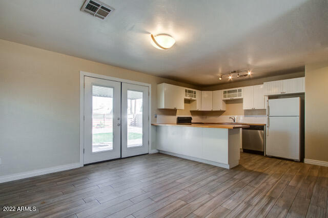 Lifestyle is Included with this adorable NO HOA - 4 Bedroom/2.5 Bathroom Home in the heart of Tempe. Features include French Doors,Stainless appliances,Gas Range,Nantucket White Kitchen Cabinets with Butcher Block Countertops. Laminate Wood Floors with Carpet in the bedrooms. Private Backyard with Grass Turf to enjoy the outdoor living. Location,Location,Location.