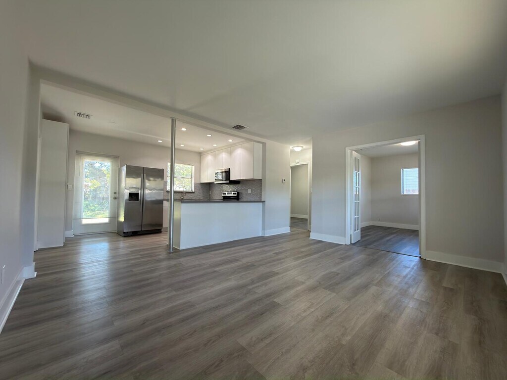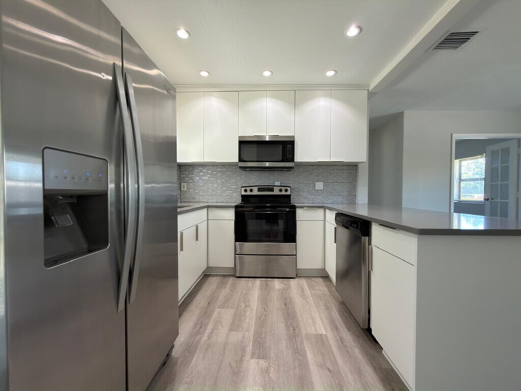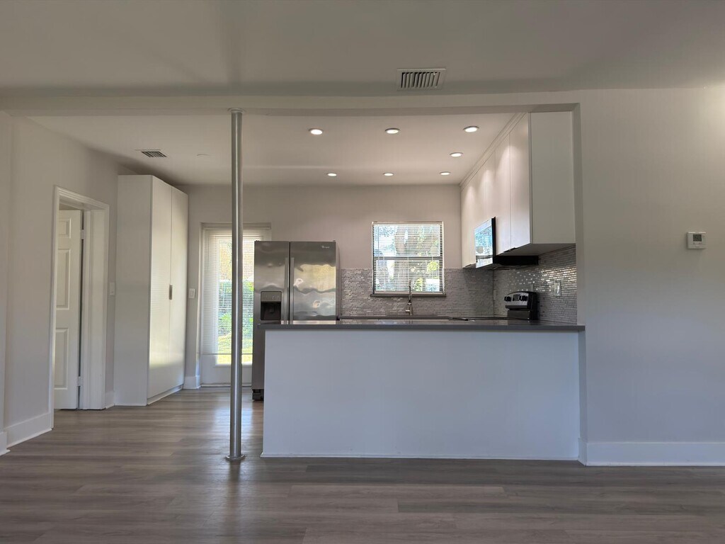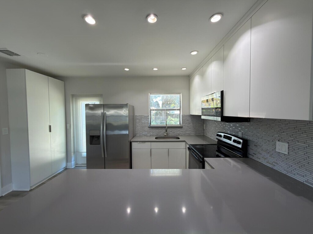 RARE OPPORTUNITY! Completely remodeled single-family home for rent in Fort Lauderdale. This beautiful home features a brand-new open kitchen with quartz countertops, new full-size stainless-steel appliances, and a spacious living room. Enjoy new waterproof vinyl flooring throughout, along with plenty of natural light that fills the home. The property offers 2 bedrooms plus a large den, ideal for a home office or easily used as a third bedroom. Both bathrooms have been beautifully updated with mosaic shower details, a contemporary tiled tub, modern vanities, and windows that bring in even more light. The home also includes a full-size washer and dryer, as well as central HVAC for year-round comfort. Step outside to a patio and a massive fenced backyard, perfect for BBQs, entertaining, and family gatherings. Property management is responsive and always available. Fast approval. All ages are welcome. You must see it!