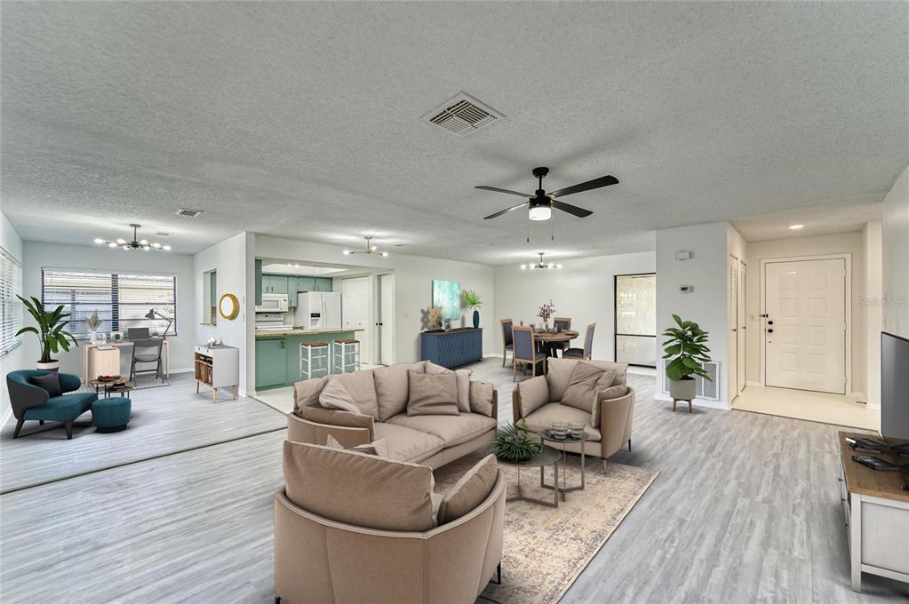 One or more photo(s) has been virtually staged. Welcome to the sought-after active adult lifestyle community of Kings Point. This newly renovated home features the best of everything! RENT INCLUDES: water,cable,internet,security,lawn service and access to an abundance of amenities. Move-in ready 2-bedrooms,2-baths and a 2-car garage. You are delightfully greeted by the curb appeal on this open concept model. Bright,clean and crisp with a touch of elegance. Large owner's suite overlooks the beautifully landscaped backyard,with a wall of continuous closets,renovated en-suite bathroom with two separate vanities and a custom designed shower. Guest bedroom is very spacious with an array of natural lighting and an abundance of closet space. The kitchen is open to the living room and dining with wood cabinets featuring gold hardware. Home also has brand new never used stainless steel appliances,butcher block countertops,custom backsplash and a large pantry for storage. All new luxury vinyl wood plank flooring (Waterproof),freshly painted from top to bottom with stylish fixtures throughout. Separate laundry room with utility sink,cabinets and washer/dryer appliances. The front porch is large,screened and covered. Ideal for enjoying your morning coffee and afternoon readings. Be sure to watch the video tour. Kings Point is a maintenance-free,resort-style active retirement community. Gated,with two beautiful clubhouses,an 850-seat Veterans Theater,6 heated pools,an elegant spa,2 hot tubs,tennis courts,3 golf courses,billiards,pickle ball courts,state-of-the-art fitness centers and much,much more. Dozens of social and sports clubs with countless opportunities to meet and greet. This maintenance-free community allows access to doctors,hospitals,shopping,banking,restaurants and virtually anything you'll ever need or want via golf cart. Sun City Center offers so may options for entertainment. Centrally located minutes from an assortment of world class beaches,some of the world's best fishing,Tampa's cruise port and Disney World. Kings Point is an award-winning community and one of Florida's best places to live MLS# TB8424392