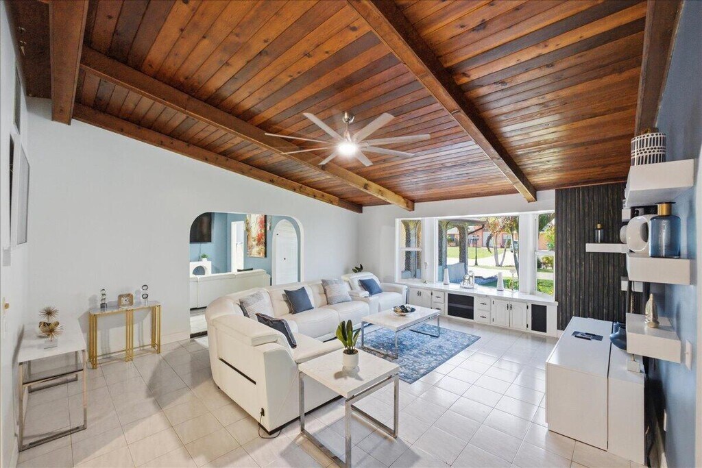 One-of-a-kind 3-bedroom,2-bathroom home offering over 2,300 living square feet in a prime location! This unique property features impact windows,tile and vinyl flooring throughout,and a split floor plan with two oversized secondary bedrooms. The huge kitchen offers extensive counter space,a brand-new refrigerator,wet bar,and plenty of room for entertaining. The spacious master suite includes a double vanity,huge walk-in California closet,and a luxurious master bathroom with a walk-in shower and jetted tub. The guest bathroom also features a large custom glass shower. Step outside to your private backyard oasis featuring turf,pavers,a fire pit,screened-in patio,outdoor bar area,gazebo,and full fencing perfect for entertaining year-round. This is truly a rare find. MLS ID B26020137