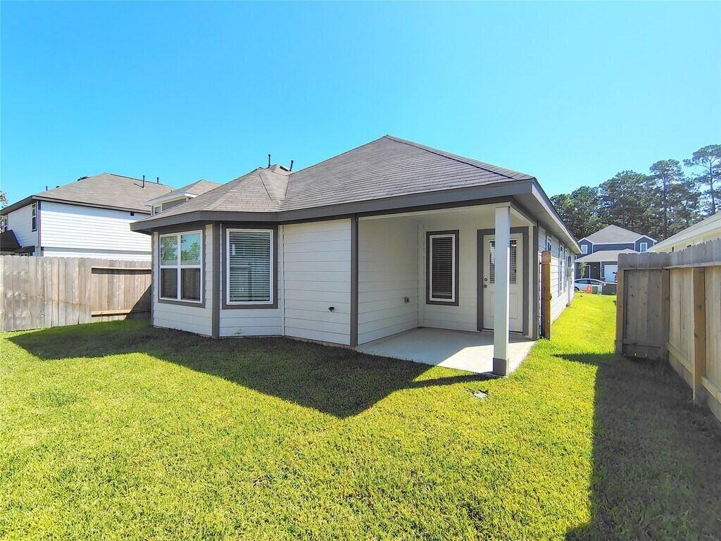 Welcome to this brand-new single-story home in the highly sought-after River’s Edge community of Conroe,zoned to top-rated The Woodlands schools. This 3-bedroom,2-bathroom residence features an open-concept layout with luxury vinyl plank flooring throughout—no carpet. The gourmet kitchen is equipped with 42” cabinets,granite countertops,and stainless-steel appliances. The Owner’s Suite offers a bay window,oversized shower,walk-in closet,and tray ceiling. Additional features include a covered patio,sprinkler system,and a private backyard. Refrigerator,washer,and dryer are included. With a 2-car garage and modern finishes,this home is move-in ready. MLS# 44499199
