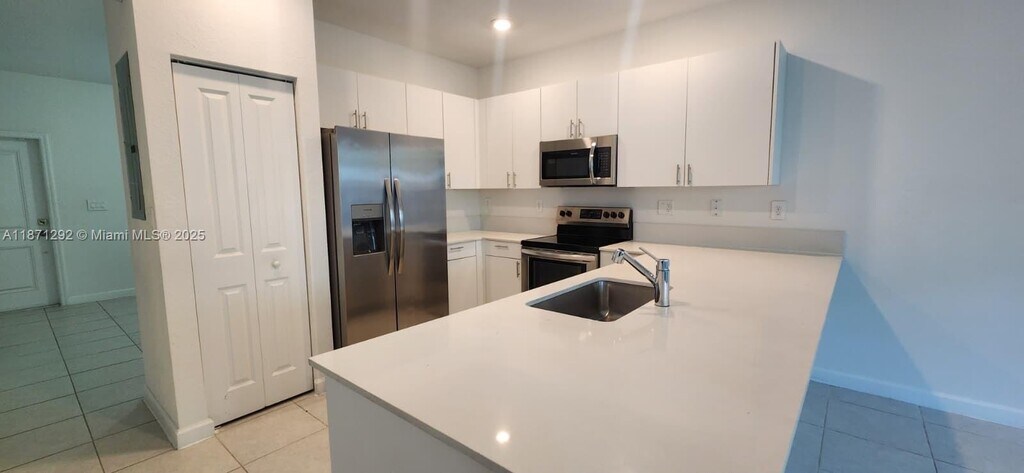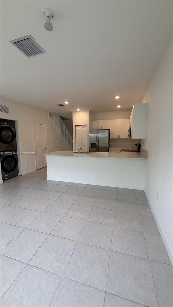 Modern 3-bedroom, 2.5-bath townhome for rent in Pine Vista, a new Lennar community in Homestead. Features include a spacious open kitchen with white cabinetry and stainless steel appliances, tile flooring on the first floor, carpet upstairs, and a private fenced backyard. Includes washer and dryer, and two detached parking spaces in front of the unit. Conveniently located near Homestead Speedway, restaurants, shopping, and the Florida Turnpike.