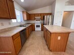 Lovely three-bedroom two bath plus open den in vail! Tile everywhere but bedrooms/den, custom tile shower and tub surrounds, open kitchen with island, low care backyard with covered patio, all on a spacious corner homesite. Washer and Dryer included.