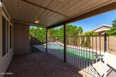 This single-level 4-bedroom,2-bath home offers style,comfort,and energy efficiency in a highly desirable Chandler location. Inside,you'll find an open-concept great room with vaulted ceilings,new luxury vinyl plank flooring (2025) throughout,and a spacious eat-in kitchen designed for entertaining. The split floor plan ensures privacy,with the primary suite overlooking the sparkling swimming pool and beautifully landscaped backyard. Enjoy recent backyard upgrades including privacy trees and easy,low-maintenance landscaping,creating a relaxing outdoor retreat. Pool service is included as an added bonus! Energy-efficient double-pane windows,new A/C unit (2025),and a cost-effective solar system (just $100/month) help keep utility bills low year-round. Conveniently located just minutes from downtown Chandler,San Tan Village,and the 202 freeway,and blocks from BASIS Chandler North Campus,this home combines modern living,savings,and unbeatable access.