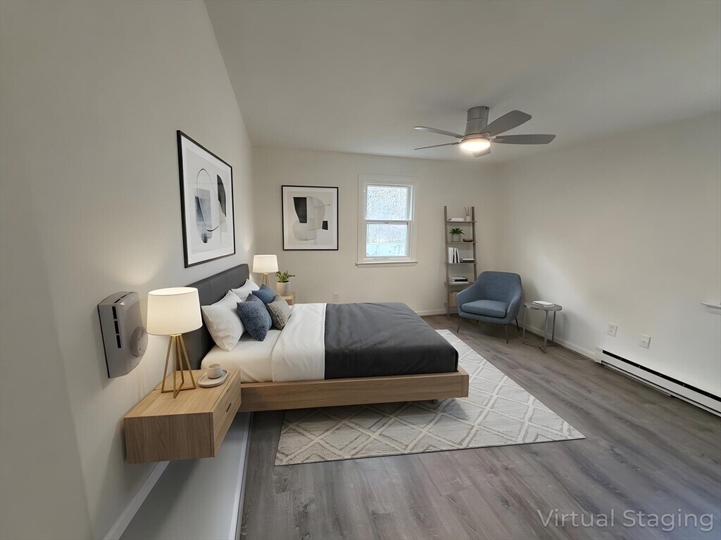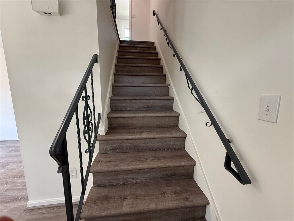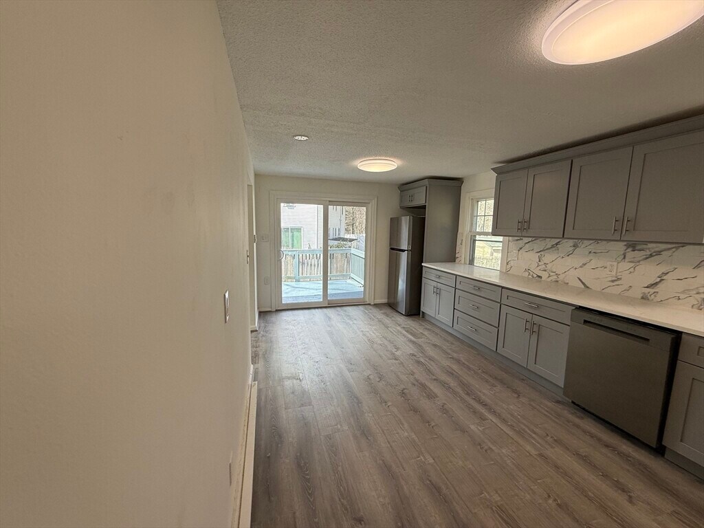 Beautifully renovated 3-bedroom,1.5-bath townhouse offering modern finishes and a spacious,functional layout. The updated kitchen features gray shaker cabinetry,granite countertops,stainless steel appliances,and tiled flooring. Bright,open living areas and bedrooms include brand new vinyl plank flooring,while both bathrooms are tastefully updated with tile finishes,including a fully tiled tub/shower. LED lighting is installed throughout,along with remote-controlled ceiling fan/light fixtures in the bedrooms. Sliders off the kitchen lead to a private deck overlooking a large open backyard,ideal for relaxing or entertaining. Additional features include off-street driveway parking,generous closet space,and a full unfinished basement with laundry hookups and excellent storage. Electric baseboard heat with individual room thermostats allows for customizable comfort. Conveniently located near shopping,parks,and major commuter routes. MLS# 73492258
