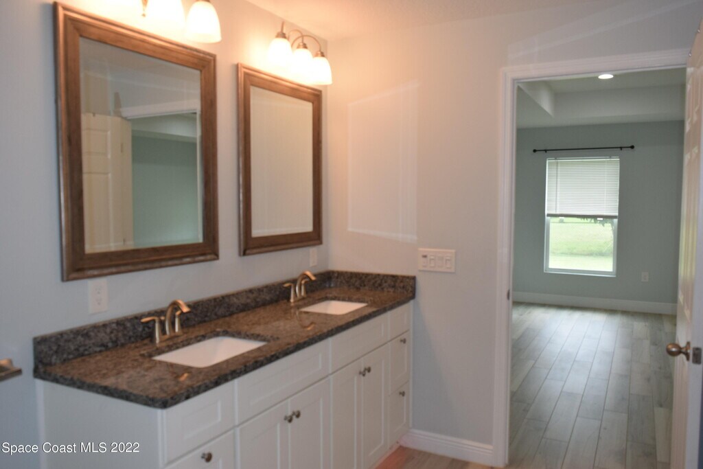 Sharon MaynardBeautiful updated 4 bedroom, 2.5 bath home in desirable area of NW Palm Bay. There's room for everyone in the spacious open floor plan with tile flooring throughout. Kitchen has plenty of cabinet space with granite counter tops and stainless steel appliances that opens to a large living/dining area with sliders to the trussed screen porch that overlooks fenced backyard. Master suite boasts large walk in closet. master bath has double sinks and amazing standing shower. Front bedroom has a double door entry that can be used as office, playroom or nursery. Half bath with laundry area Washer and Dryer included (not warranted) for extra convenience. 2 car garage with automatic opener. Basic lawn care included in rent.