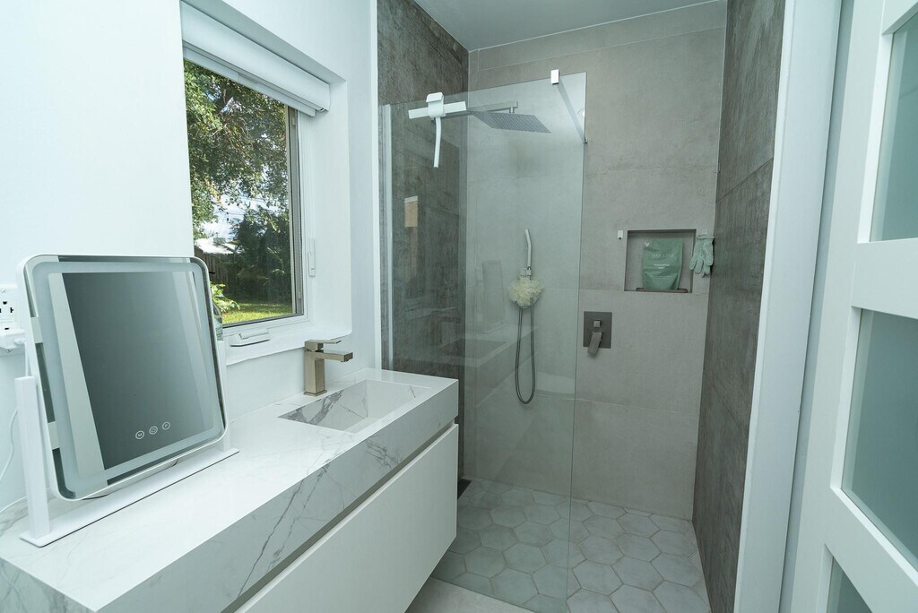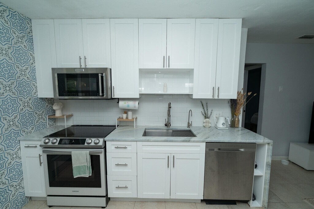 3-bedroom home full of character and charm in a lush tropical setting! Features a brand-new kitchen with stainless steel appliances,granite countertops,stackable washer/dryer,tile flooring and vinyl laminate flooring throughout. The spacious 3rd bedroom off the living room has its own private entrance and beautiful modern style bathroomperfect for guests or separate living if desired. The screened front porch and beautifully landscaped,fenced backyarddesigned with true Florida flairoffer inviting spaces to relax and unwind. Available furnished or unfurnished,with quick move-in possible. Pets welcome (breed sensitive). Lawn Maintenance included. 15 minutes to Ft Laud Beaches,Riverwalk,Las Olas Blvd and all the great restaurants and shopping! MLS ID F10537016