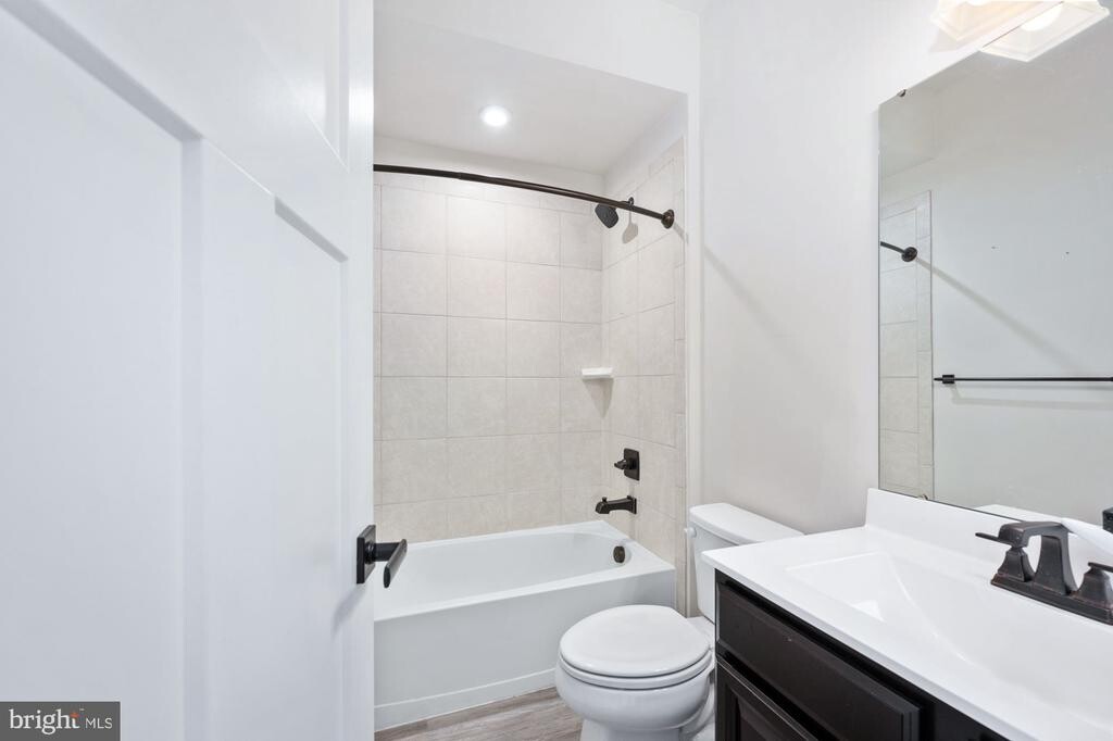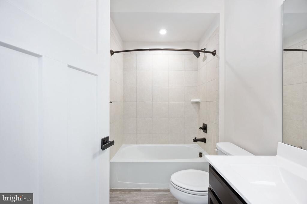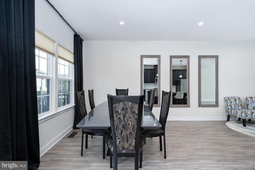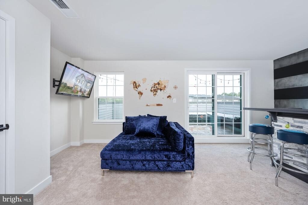 Discover this exceptional townhome in Fredericksburg, distinguished as the largest end-unit within the community. This residence features an expansive open-concept design distributed across four finished levels, complemented by a spacious garage. The main level includes a welcoming living room that seamlessly connects to a gourmet kitchen and dining area. The kitchen is equipped with a large island, granite countertops, stainless steel appliances, a gas range, and a pantry, making it suitable for both daily living and entertaining guests. From the dining area, residents can access a generous composite deck, ideal for outdoor gatherings and leisure activities. The first upper level offers a spacious primary bedroom with a walk-in closet and an en-suite bathroom featuring double sinks, a separate walk-in shower, and a soaking tub. This level also includes two additional bedrooms, a full bathroom, and a laundry area. The second upper level presents a versatile space with a built-in bar, a full bathroom, and access to a rooftop terrace, perfect for relaxation or hosting social events. The lower level comprises a family room, additional storage options, and an attached garage, enhancing the home's overall functionality. Conveniently situated near the VRE station, shopping centers, restaurants, and Interstate 95, this property offers a combination of modern amenities and practical design.