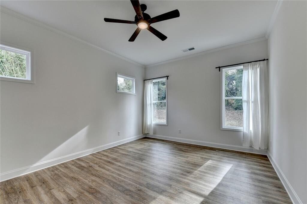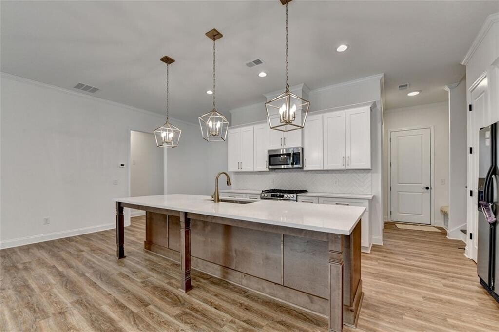 Brand-New House for Rent! Gorgeous newly built ranch-style home conveniently located in the well-established community of Sugar Hill. This 4-bedroom,3-bathroom home features an open floor plan that flows seamlessly from the stylish foyer into the family room with luxury LVP flooring throughout the open space. The light-filled family room provides the ultimate retreat,combining the comforting glow of a fireplace with refreshing views of the natural backyard beauty. Step into the Chef’s kitchen that is the heart of the home. It features custom-crafted,high-end cabinetry,a large center island with elegant quartz countertops,and brand-new Stainless-Steel appliances. A separate formal dining room with the option of transforming into an office or living room provides additional versatility. Thoughtfully designed mudroom by the garage entrance zone with built-in shaker-style entryway cabinets paired with a wooden bench add additional comfort and convenience. Three bedrooms on the main floor,featuring a luxurious master suite with private spa-like full bath and a second separate full bathroom. Upper level fourth bedroom with direct access to a private full bath. The back door opens directly onto a covered patio leading to a secluded,private backyard,perfect for quiet relaxation. In addition to being a non-HOA property,this residence offers a prime location just minutes from the dining,shopping,and entertainment of Downtown Sugar Hill with the bonus of your own private escape. Be the first to live here!