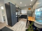This beautifully remodeled studio is available furnished, unfurnished, or partially furnished. It's been recently updated with vinyl plank flooring, new windows, recessed lighting, a skylight, a well equipped kitchen, large bathroom, gas wall heater, and is conveniently located between old town Eureka and Henderson Center. Tucked behind the main house, the detached studio is quiet, with off street parking, and close to the park, post office, restaurants, the hospital, and shopping. Tastefully decorated, it has a bright, open interior, with full sized stainless appliances including a gas range, dishwasher, microwave, refrigerator, and plenty of cupboard storage, plus a built-in butcher block table. The remodeled bathroom has a nice tiled shower, and a high end washer/dryer/steamer. Enjoy the 50 inch TCL Roku Smart TV from the queen sized Novaform bed or the comfy couch, or even better, go outside and lounge on the front deck. Owner pays: Water/Sewer, and Garbage/Recycling Tenant pays: PG&E and WIFI $1,400 monthly furnished $1,350 monthly unfurnished $2,100 Security Deposit (owner is exempt from CA security deposit limit law) Available Mid October with viewings available now, lease term 6-9 months...with option to renew. Please call or text Amanita at between 9am and 6pm schedule a showing, and intro is greatly appreciated Amanita Mollier DRE License #02211276 Complete Property Management,1175 G St Suite B, Arcata, CA, 95521