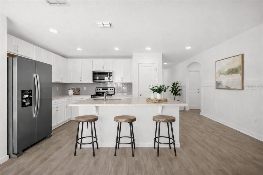 This Pristine Former Model Home in Cypress Park Estates offers Upgraded Finishes,a Premium Corner Lot,a Huge Backyard perfect for entertaining or relaxing and Immediate Availability. Featuring 4 Bedrooms,2 Full Baths,and an Open-Concept Layout,it’s thoughtfully designed for everyday comfort and convenience. Enjoy your Sound Surround System in the living room,ceiling fans in every bedroom,a spacious kitchen island,and access to community amenities like a pool,cabana,dog park,and tot lot. Includes,New Never-Used Refrigerator,Washer & Dryer,Alarm and Camera system. Close to healthcare,shopping,and just a short drive to Disney and Legoland. Don’t miss this Rare Opportunity! MLS# O6368273