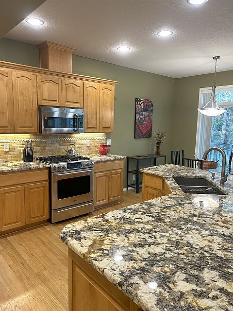 Fully furnished home with Utilities and yard care included. Rent furnished for $5,500 per month with a minimum 30-day commitment. Lease may be extended after initial period. Available 4/15 to tour or for quick move-in. For an appointment call Robert . There are high Cathedral ceiling as you enter the home. The main floor offers a formal living room, formal dining area, and a separate office/den space. It has an open concept family area complete with gas fireplace in the family room, gorgeous island kitchen with stainless steel appliances and granite counters, laundry room and bath. Upstairs features a comfy gathering area/loft area, 3 bedrooms and 2 full baths. The primary suite has a soaking tub, granite counters, separate shower/toilet room and a walk-in closet. The home is furnished with one king bed in the primary and one queen bed in each of the other upstairs bedrooms. The yard is fully fenced and there is a double car garage available for use by tenants. This home is located in the highly desirable North Clackamas School District. Pets are allowed with approval of management. The yard is fully fenced. There is a $1,000 Pet Fee which is non-refundable