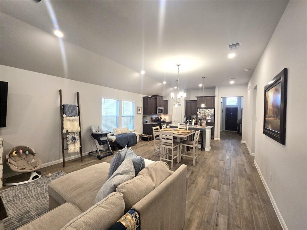 Welcome to this beautiful home in the highly sought-after Butler Farms community—perfectly designed for comfortable, modern living. This well-maintained property features a bright open-concept layout with abundant natural light, stylish flooring, and upgraded light fixtures, creating a warm and inviting atmosphere throughout. The spacious kitchen opens seamlessly to the living and dining areas, and includes granite countertops, stainless steel appliances, and plenty of cabinet space—ideal for both everyday living and entertaining. Offering four generously sized bedrooms, this home provides great flexibility for families, guests, or a home office. The primary suite is privately situated and features a spa-like bathroom with a tiled walk-in shower, dual vanities, and a large walk-in closet. Enjoy outdoor living with a covered porch and extended patio, along with a fully fenced backyard—perfect for relaxing or hosting gatherings. Conveniently located just off Highway 29 and zoned to highly rated Liberty Hill ISD schools, this home combines location, comfort, and value. Refrigerator, washer, and dryer are included for added convenience. MLS ID 4566229