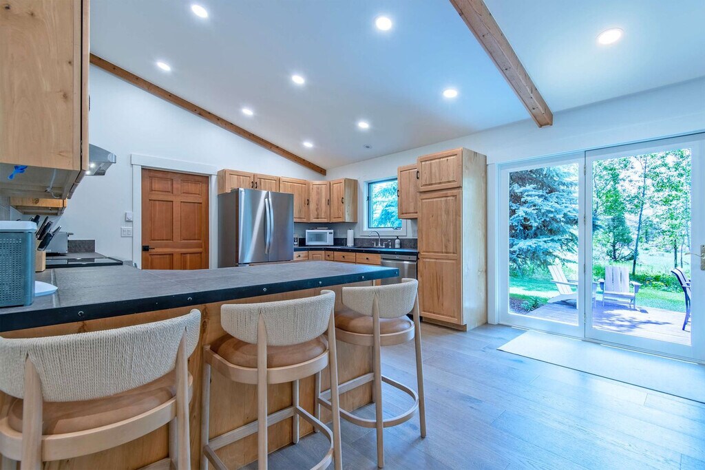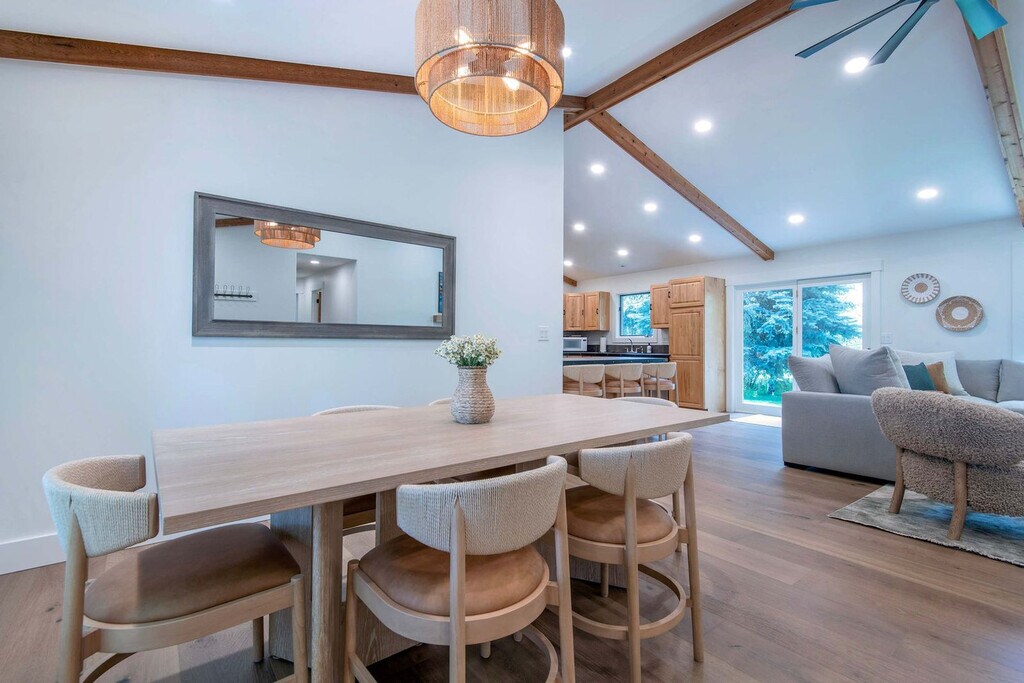 Escape to this enchanting vacation home in Teton Valley, where privacy and the great outdoors come together seamlessly. Nestled on 2.8 acres at the end of a tranquil cul-de-sac, this property offers the perfect retreat for those seeking solitude and adventure. Feel at home with a rejuvenating hot tub and an expansive yard shaded by majestic trees, creating an idyllic setting for al fresco dining and social gatherings. Step inside this single-level abode, spanning 1980 square feet, and discover a warm and inviting open floor plan that effortlessly connects the living room, dining area, and kitchen, inviting family bonding and relaxation. There's also a generously sized game room, providing a space for them to burn off energy after a day of exploring the rugged mountains. Whether it be ping pong or board games, this room is a great gathering space for your family. In the living room, entertainment is at your fingertips with a smart TV ready for streaming your favorite apps like Netflix, Hulu, Prime Video, and more. The large family room features wooden floors, a soaring vaulted ceiling, and a cozy wood stove, creating an atmosphere of rustic charm. The master bedroom indulges you with a soothing soaking tub in the master bath, perfect for unwinding after a day of adventure. With a king-size bed in the master bedroom, a queen bed in the second bedroom, and a twin over queen bunk bed in the third bedroom, this home comfortably accommodates your entire family. The fully equipped kitchen boasts modern conveniences like a dishwasher and microwave, along with a central butcher block counter, making meal preparation a breeze. When you're ready to explore the surrounding wonders, you'll find Yellowstone National Park, Grand Teton National Park, and the vibrant downtown Jackson, WY, all within an easy one-hour drive. For those craving outdoor thrills, both the Grand Targhee Resort and Jackson Hole Mountain Resort are a mere 40-minute drive away, offering limitless opportunities for adventure and recreation. Whether you're relaxing in the hot tub, enjoying the mountain views, or embarking on wilderness escapades, this Teton Valley retreat promises a memorable family vacation amid nature's tranquility. The number of people at the property should not exceed the maximum sleeping capacity. Quiet hours are from 9 pm to 8 am, so please be respectful to our neighbors. No events are allowed, including parties, large gatherings, and weddings. Smoking or vaping is prohibited in the home or on the decks, and an additional charge will be applied if any butts are found on the property. Please turn all exterior lights off at night to preserve the beauty of our dark skies. Drive slowly in our neighborhood in respect of children, pets, and wildlife. A maximum of four licensed vehicles is allowed in the driveway and garages. Snow machines, dirt bikes, and ATVs are not permitted in the subdivision or at the rental property. Candles or incense should not be burned in the home, and fireworks are not allowed on the premises. Keep all main entry doors locked when not occupied. A maximum of one pet is allowed, and you must advise immediately upon booking if you are bringing a pet. If pets are brought onto the property without paying the pet fee, or if more than one pet is brought without authorization, we reserve the right to terminate your booking immediately. Pets are not allowed on any furniture or bedding, and pet owners should provide their own pet bedding. If pet hair is found on furniture or bedding, there may be an additional fee. Owners must pick up after their pet, and bagged waste should be placed in the provided trash cans. Pets should never be left unattended unless kenneled or crated, and noise complaints from kenneled pets may result in the termination of your stay. All guests must clean off in the shower or bath before using the hot tub. Do not enter the hot tub dirty or wearing lotion, sunscreen, or makeup, as additional cleaning will incur an extra fee. Fines will apply for violations, including but not limited to leaving garbage in the house or litter on the grounds, failure to disclose or clean up after pets, smoking in the house or garage, failure to follow house rules and respect posted signs, failure to follow check-out procedure, mistreatment of the hot tub, or violations of local laws. A minimum $500 fine applies for smoking, vaping, or using marijuana in the house, violation of house rules, posted signs, laws, or failure to vacate at check-out time.