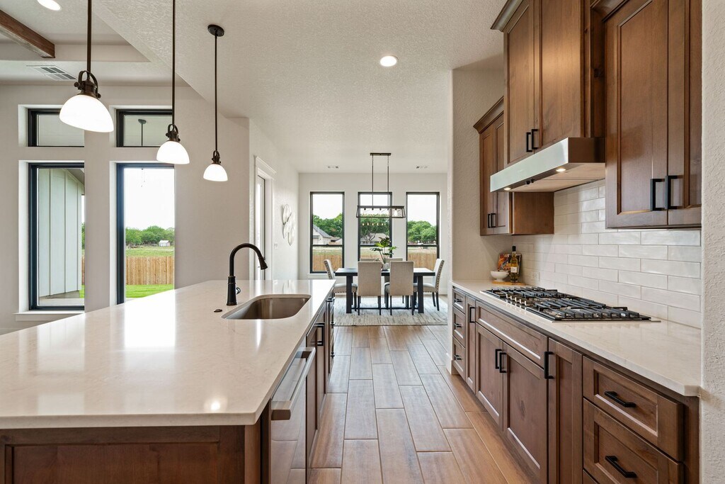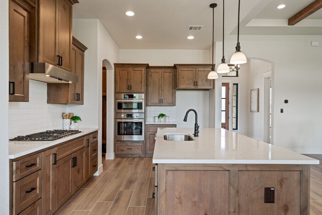 Welcome to luxury living at its finest in the serene and highly sought-after Country Village Estates of charming Castroville, Texas. This newly constructed custom residence by the esteemed Etter Custom Homes is a true showcase of superior craftsmanship, timeless design, and modern comfort. From the moment you step inside, you are welcomed by an atmosphere of sophistication and warmth. Impressive 8-foot shaker-style solid core doors, soaring ceilings, custom wood beam accents, and elegant judge’s paneling and shiplap wall treatments create a refined yet inviting aesthetic throughout the home. At the heart of the residence is a stunning chef’s kitchen thoughtfully designed to combine beauty and functionality. Outfitted with upgraded stainless steel Bosch appliances, this space features meticulously crafted custom cabinetry with dovetail drawers, hidden hinges, soft-close doors, convenient pull-out racks, and bespoke pantry cabinets that provide exceptional storage while maintaining a sleek, upscale look. The kitchen flows effortlessly into the spacious dining area and expansive living room, where a dramatic full-height stone fireplace serves as a striking focal point, making the home ideal for both entertaining guests and enjoying quiet evenings in. The private primary suite is a true retreat, offering a peaceful escape at the end of the day. The spa-inspired primary bath is equally impressive, featuring a freestanding oval soaking tub, separate vanities, and upgraded designer fixtures that blend luxury with everyday convenience. Adding to the home’s versatility is a thoughtfully designed flex space with endless possibilities such as a 4th bedroom. Outside, the home continues to impress with inviting outdoor living spaces, including a spacious covered patio and a welcoming front porch, both perfect for relaxing, entertaining, and enjoying the peace and privacy of this prestigious community. This is more than just a home—it is a statement of quality, elegance, and thoughtful design in one of Castroville’s most desirable neighborhoods.