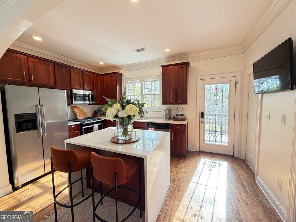 ***This property is tenant occupied, do not disturb the tenant. Contact list agent with questions.**** Experience Tranquil Living in the Heart of the City! Welcome to your urban oasis, where the charm of the countryside seamlessly blends with the vibrancy of city life. This remarkable home offers a serene retreat amidst the urban hustle and bustle. From the moment you step onto the inviting front porch, envision yourself in a rocking chair, surveying your meticulously landscaped front yard Co a picturesque introduction to the serenity within. As the sun sets, indulge in breathtaking views from your owner's suite balcony, the perfect place to unwind after a long day. Entertain effortlessly on your oversized patio and deck, nestled within your privately fenced backyard Co the ideal setting for hosting gatherings with loved ones. This property exudes elegance, featuring hardwood floors that gracefully span the entire main level, creating an open and welcoming ambiance. The heart of this home is the kitchen, a culinary masterpiece boasting custom Quartz countertops, a matching Quartz backsplash, and a striking waterfall Quartz island. Bathed in ambient light, stainless steel appliances gleam, while a convenient breakfast bar and expansive island make meal preparation a delight. On cooler evenings, find solace in the family room by the fireplace, creating a cozy atmosphere. As your journey continues upstairs, you'll be greeted by the luxurious transformation of exquisite white oak flooring. Discover two generously sized secondary bedrooms and an upgraded second bath, complete with new flooring, a vanity, touchscreen, and an anti-fog mirror. The owner's suite is a true haven, featuring a tray ceiling, a walk-in closet, and a sumptuous bath with a separate shower, also upgraded with new flooring, a vanity, touchscreen, and an anti-fog mirror. For moments of solitude, savor a beverage on your private balcony just off the suite. Beyond its inherent charm, this home also presents an exciting investment opportunity. Currently operating as an AIRBNB, it offers a unique chance to capitalize on its allure. Don't let this extraordinary opportunity pass you by. Act swiftly Co schedule a viewing today and seize the chance to make this remarkable residence your new home!