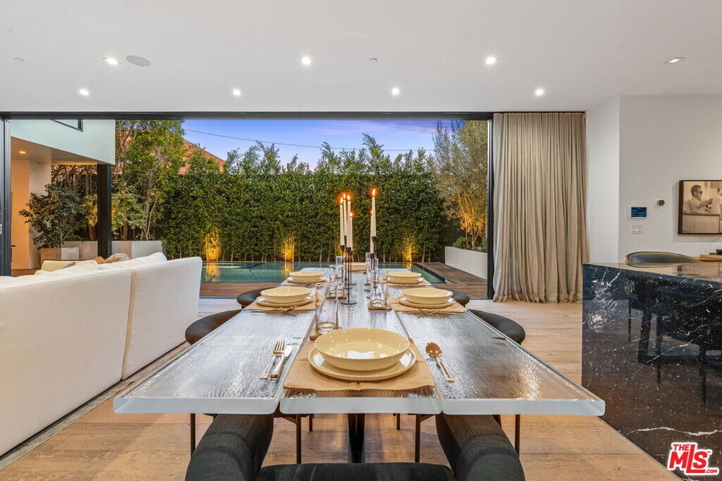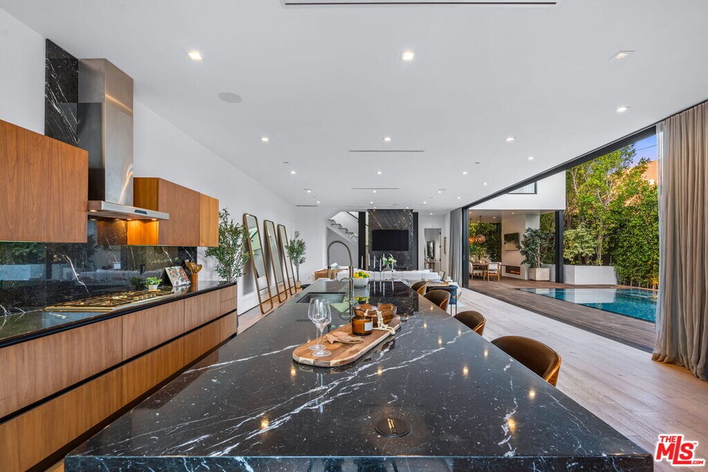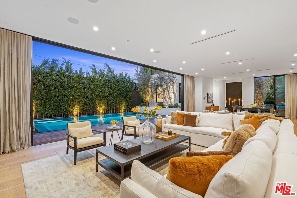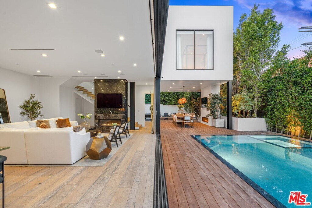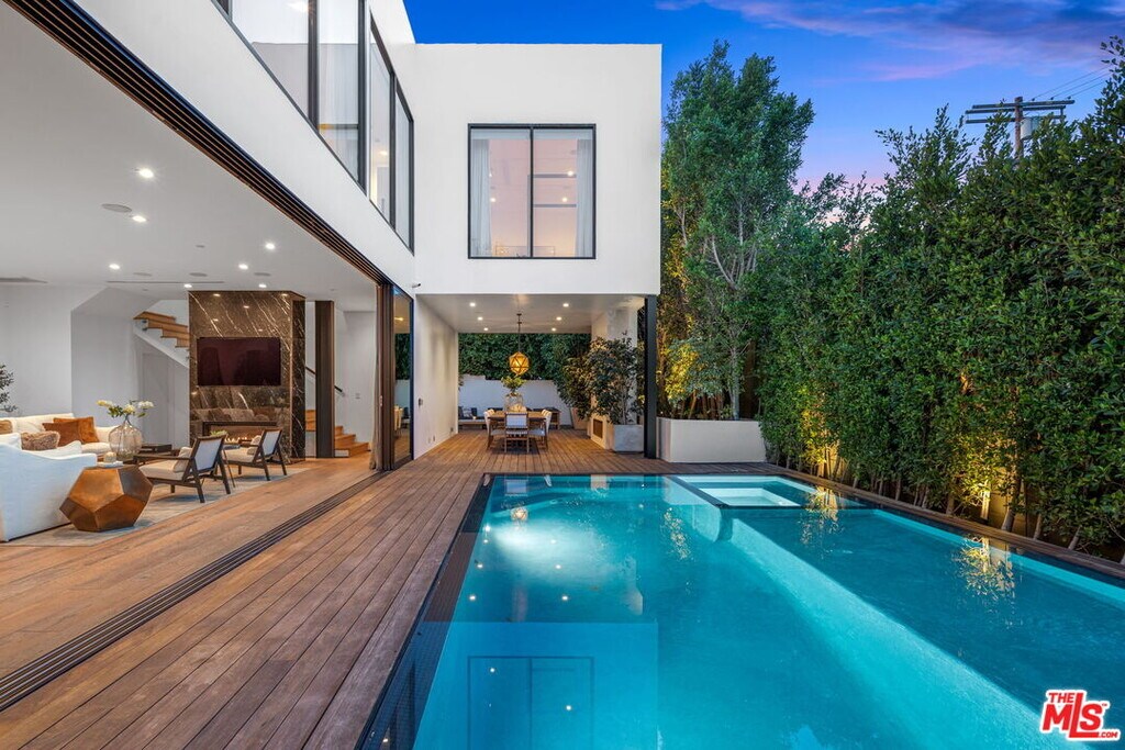 Gated and hedged, this bespoke newer construction contemporary home is located in the heart of the Beverly Grove neighborhood, just minutes away from The Grove and acclaimed restaurants, cafes, and renowned shopping destinations. Entering the front yard, one is greeted by a generous and expansive front deck. A voluminous open floor plan is revealed through the grand pivot door. A prominent wall of glass opens lengthwise to the yard, featuring a zero edge pool, spa and ample entertainment spaces, giving the feeling of a natural extension of the home and seamlessly integrated with the indoor living areas through sliding pocket doors. Four en-suite guest rooms are spacious and bright, all featuring walk-in closets, gorgeous bathrooms and floor-to-ceiling windows. A masterpiece of light and design, this Beverly Grove contemporary is filled with extraordinary moments, offering the perfect balance of open spaces and privacy, that is a model of style and sophistication. Fully furnished. Easy to show. MLS# 25615069
