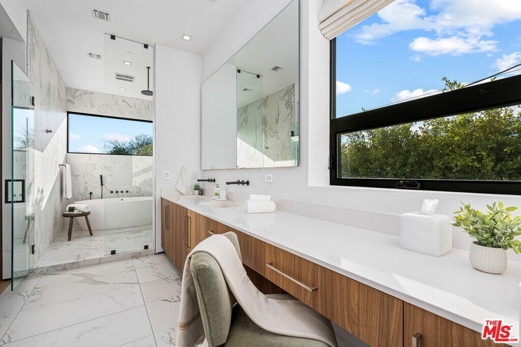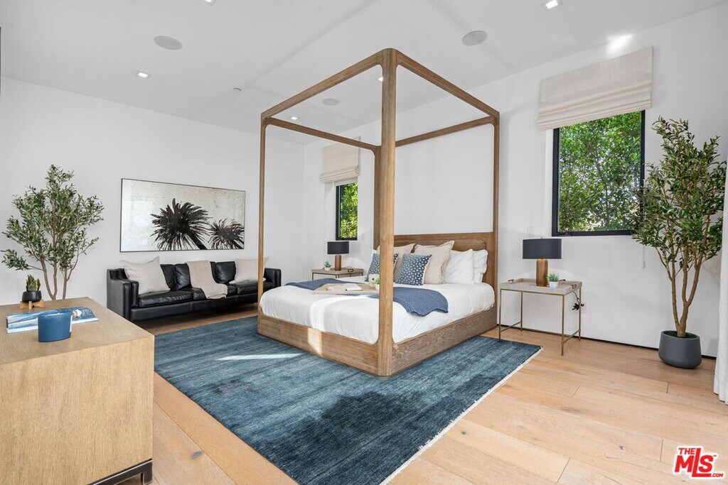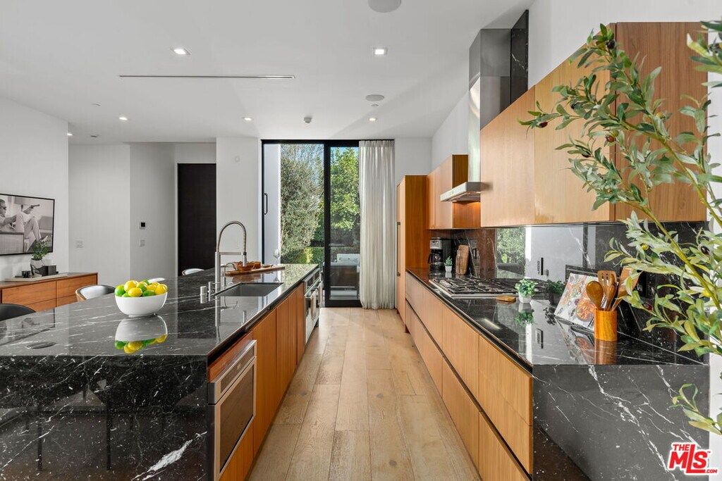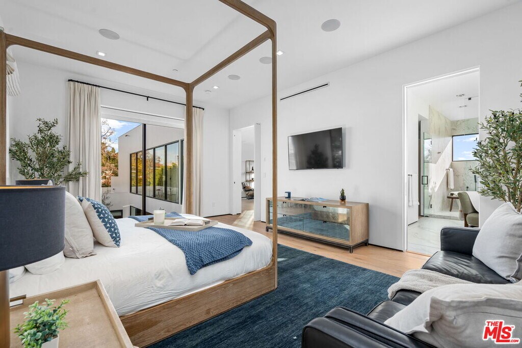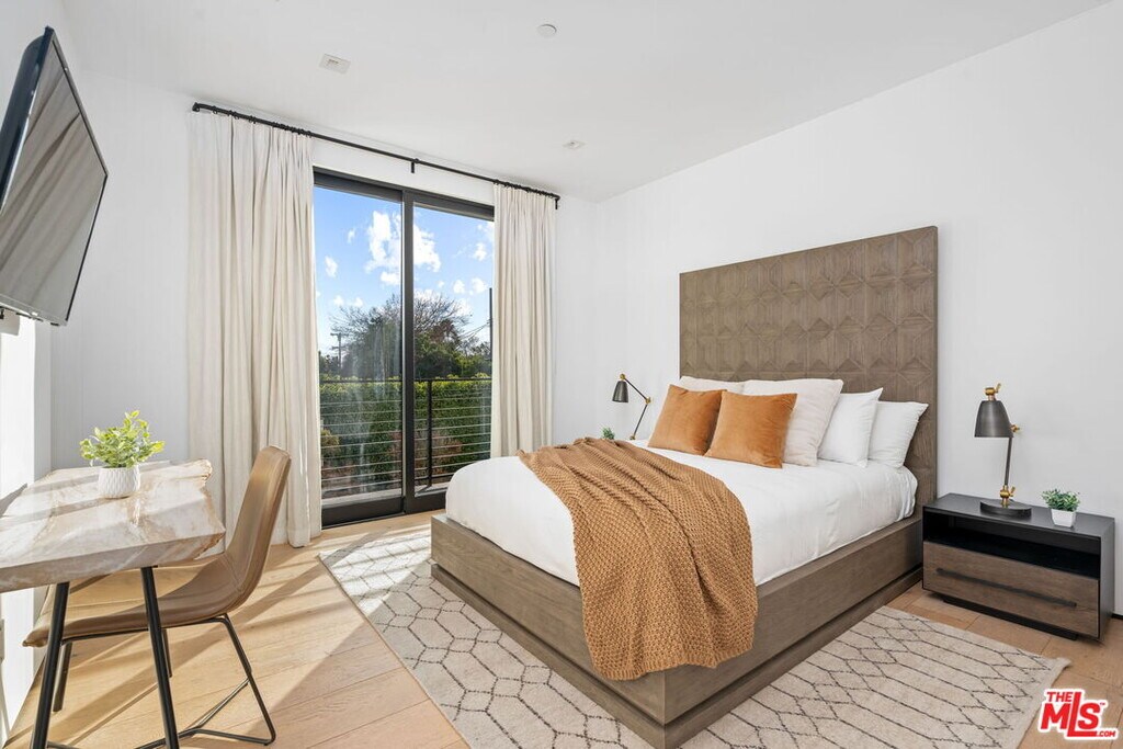 Gated and hedged, this bespoke newer construction contemporary home is located in the heart of the Beverly Grove neighborhood, just minutes away from The Grove and acclaimed restaurants, cafes, and renowned shopping destinations. Entering the front yard, one is greeted by a generous and expansive front deck. A voluminous open floor plan is revealed through the grand pivot door. A prominent wall of glass opens lengthwise to the yard, featuring a zero edge pool, spa and ample entertainment spaces, giving the feeling of a natural extension of the home and seamlessly integrated with the indoor living areas through sliding pocket doors. Four en-suite guest rooms are spacious and bright, all featuring walk-in closets, gorgeous bathrooms and floor-to-ceiling windows. A masterpiece of light and design, this Beverly Grove contemporary is filled with extraordinary moments, offering the perfect balance of open spaces and privacy, that is a model of style and sophistication. Fully furnished. Easy to show. MLS# 25615069