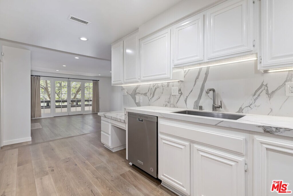 Welcome to this bright and spacious 2-bedroom, 2-bathroom residence offering approximately 1,699 square feet of refined living in one of Beverly Hills' most desirable neighborhoods. Nestled on a quiet, tree-lined street, this beautifully updated condo blends comfort, style, and an unbeatable location.The home features abundant natural light, high ceilings, and an open, flowing floor plan. Elegant hardwood flooring runs throughout, complemented by updated countertops, modernized kitchen and bathrooms, and stainless-steel appliances. The kitchen includes a convenient breakfast area, perfect for casual dining.The expansive primary suite serves as a true retreat, complete with a large walk-in closet and a luxurious bathroom featuring a double vanity, soaking tub, and separate shower. A generously sized second bedroom and full bathroom provide flexibility for guests, family, or a home office. The spacious separate dining area is ideal for entertaining.Ideally located just blocks from Rodeo Drive, Beverly Vista School, premier dining, markets, houses of worship, and the Beverly Hills Police Department, this home offers both convenience and lifestyle.Additional highlights include gated parking with two tandem spaces and an in-unit washer and dryer. Available immediately and offered for an initial lease term of 13 months or longer. This is an exceptional opportunity to enjoy luxury living in a prime location. MLS# 26666807