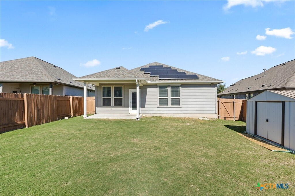Welcome to 133 Spanish Foal Trail,a stunning single-story home located in the desirable Saddle creek subdivision of Georgetown,Texas. Built in 2018,this modern residence offers 3 bedrooms,2 bathrooms,and 1,551 sq. ft. of living space on a 6,442 sq. ft. lot. Step inside to an open-concept floor plan featuring granite countertops,wood-look tile flooring in common areas,and a bright,airy design perfect for entertaining. The kitchen boasts a gas range,energy-efficient appliances,and a spacious pantry. The primary suite includes a walk-in shower,soaking tub,and ample closet space. Enjoy outdoor living with a covered back patio,privacy fencing,and a landscaped yard with a sprinkler system. This home is equipped with solar panels and a smart home security system featuring a smart door lock,doorbell,thermostat,and garage door opener. Community amenities include a pool,playground,gym,fishing pond,frisbee golf,and hike-and-bike trails. Conveniently located just minutes from HEB,Wolf Ranch Shopping Center,Round Rock Outlet Mall,and a short drive to Downtown Georgetown and Austin International Airport via Toll-130. Welcome Home!