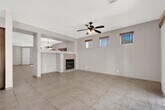 This is a wonderful single story home in an established, small. quiet community in Summerlin. Tile Everywhere except bedrooms. Corian countertop, double oven, side by side fridge, a lot of cabinet spaces. 4 bedrooms, 2 bathrooms. A great living room in the front, and a family room overlooking the kitchen. A beautiful backyard with pomegranate tree, apple tree, fig tree, and grape vines. There is also a covered patio with a wood burning BBQ oven. Truly a lovely home in a great location.