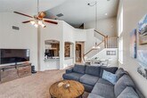 Welcome to this beautifully updated, 4 Bdrm 2.5 Bath, open-concept home featuring soaring ceilings, an abundance of natural light, and modern touches throughout. With 4 spacious bedrooms, a Flex room that can easily be a 5th Bdrm or Office, versatile game room, and a layout designed for both comfort and entertaining, this home has space for everyone! Enjoy cooking and gathering in the open kitchen, relax in the inviting living area, or host game nights in the upstairs game room. Step outside to a generous backyard, perfect for play and relaxing. Located in a highly sought-after community with walking trails, a sparkling pool, and a private catch-and-release lake, this home offers the perfect blend of peaceful surroundings and family-friendly amenities. This lovely home is also FOR SALE!