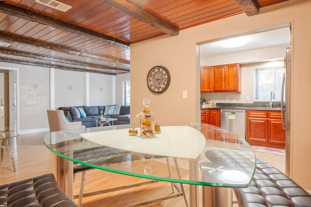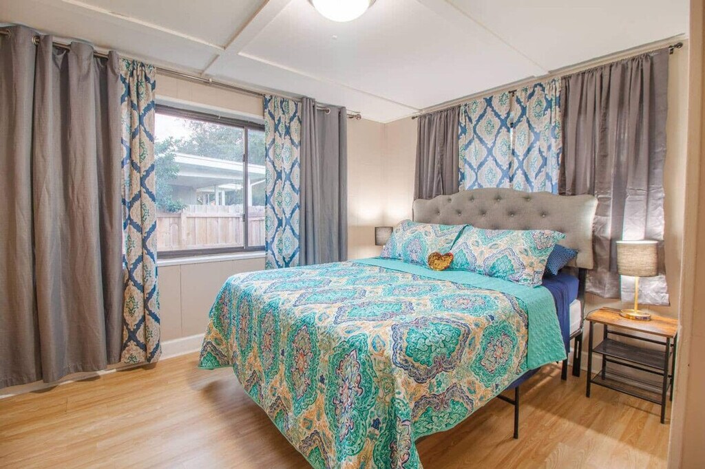 Welcome to this private 1-bedroom unit just 10 minutes from downtown Orlando, featuring a separate entrance, a sunny porch, and a dedicated workspace. Feel at home with walkable access to shops, dining, and transit, all while enjoying high-speed Wi-Fi. This home offers a spacious layout with 6 bedrooms and 4 full bathrooms, all designed for restful nights and modern living. The fully equipped kitchen includes a stove, oven, microwave, refrigerator, cookware, and utensils, perfect for preparing meals. Enjoy open living and dining areas ideal for group gatherings, and take advantage of the laundry room with a washer and dryer included at no extra cost. Air conditioning and heating ensure year-round comfort. Street parking is available with space for 2 vehicles on each side of the ramps. The property welcomes up to 4 dogs per stay, with a fee of $60 for small dogs and $100 for large dogs. All dogs must be declared in advance to ensure a smooth check-in and proper accommodations. Undeclared pets may result in additional fees or cancellation. House-trained and non-aggressive dogs only, with a crate required if left alone indoors and a leash required when outside. No pets on furniture, so please bring your pet’s bedding. Located in a tranquil residential community known for its tree-lined streets and well-maintained homes, this property offers a peaceful living environment. Downtown Orlando is approximately 10 minutes away by car, providing easy access to a vibrant array of dining, entertainment, and cultural venues. The Orlando International Airport is around a 20-minute drive, facilitating convenient travel options. Universal Studios Florida is about 25 minutes away, making it accessible for weekend adventures. Residents benefit from nearby shopping centers, restaurants, and essential services, enhancing daily convenience. The neighborhood's central location ensures that various amenities are within a short drive. This unit shares walls and a ceiling with another unit, but it’s designed for privacy and comfort. As part of a quadruplex, you may hear some noise from neighboring guests. Please keep noise levels low from 8:00 p.m. to 8:00 a.m. to ensure a peaceful stay for everyone. Check-in is at 4:00 PM and check-out is at 10:00 AM. Late check-out may result in additional fees. Lock all doors when leaving the property. Windows do not open, so do not attempt to force them. Do not move furniture, and if necessary, return everything to its original position before check-out. Smoking inside the property is strictly prohibited and will result in an automatic complaint. If you smoke, please do so outside and dispose of cigarette butts properly. A security camera is installed outside near the entrance for everyone’s safety. It does not record inside the home and complies with privacy policies. Do not unplug or tamper with it during your stay. The patio and parking areas are shared with other guests. Enjoy the outdoor areas while respecting everyone's space. Maximum of 2 compact cars per unit, with additional vehicles required to park on the street. The dedicated workspace is equipped with high-speed Wi-Fi, ensuring a remote work-friendly environment. [SI]