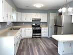 Two Bedroom House in Collinsville, LVP Flooring Throughout Main Living Areas, 19 x 14 Living Room, 16 x 12 Kitchen Includes Electric Range, Garbage Disposal, Dishwasher and Refrigerator, Adjacent Dining Area Provides Back Yard Access, Full Hallway Bathroom with Double Vanity Sinks, 15 x 12 Master Bedroom and 12 x 11 Second Bedroom, Fenced Back Yard, Two Car Attached Garage, Available 10/14/2025.