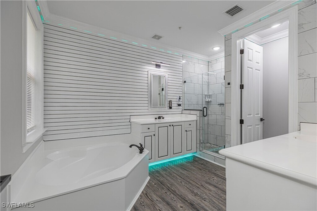 Now Available For Annual Rental: Experience refined living in this elegantly upgraded 3-bedroom,2.5-bathroom townhome,perfectly situated in the sought-after gated community of Mariposa at Whippoorwill. Sophisticated style meets effortless comfort in this spacious residence,featuring a 2-car attached garage with custom built-in cabinetry and a tranquil screened-in lanai that overlooks a picturesque lake—your own private retreat for morning coffee or evening relaxation. Inside,every detail has been thoughtfully curated. Rich luxury vinyl plank flooring flows throughout the home,complemented by crown molding and designer shiplap accents that elevate the ambiance. The living room exudes warmth and charm with a custom electric fireplace framed by built-in shelving,creating an inviting space ideal for both everyday living and intimate gatherings. The open-concept kitchen offers a perfect blend of form and function with a breakfast bar,eat-in dining area,and an additional formal dining room,all designed with entertaining in mind. A well-appointed powder room completes the first floor. Upstairs,the serene primary suite serves as a private sanctuary,featuring an ensuite bath with an indulgent soaking tub and ample closet space. Two additional guest bedrooms,a full bath,and a convenient laundry room ensure comfort and practicality for family and visitors alike. The versatile loft provides endless possibilities—home office,media lounge,or game room—tailored to your lifestyle. Mariposa residents enjoy resort-style amenities including a beautifully appointed clubhouse,fitness center,and a sparkling lakeside pool. Centrally located in Naples,this exceptional home offers effortless access to world-class shopping,dining,and the pristine beaches of Southwest Florida. Indulge in luxurious living in this meticulously updated townhome—an exceptional opportunity in a premier Naples location.