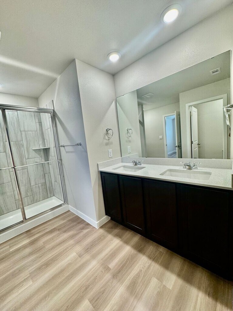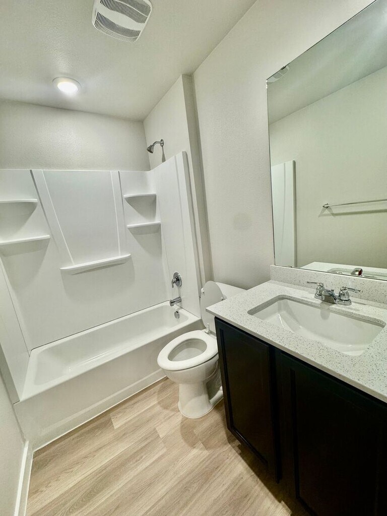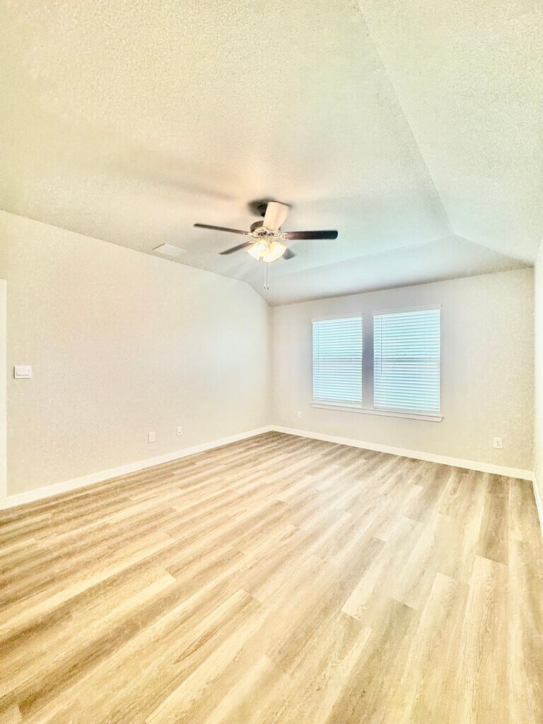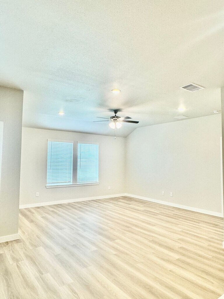 This 1,796 sq. ft. home features an open floor plan, natural light, and a modern kitchen with stainless steel appliances, black cabinets, and a white backsplash. Ceiling fans, updated light fixtures, and oak faux wood plank flooring add style throughout. Enjoy a large fenced backyard perfect for entertaining or relaxing. This move-in ready new construction won’t last long! Call today to schedule your showing! Apply: