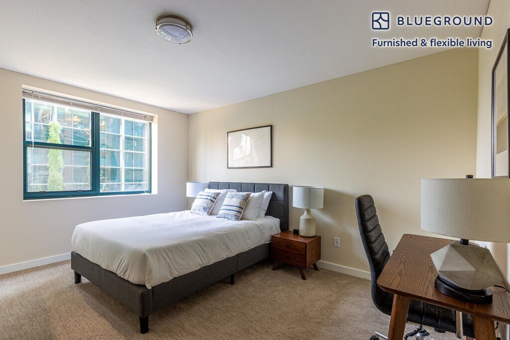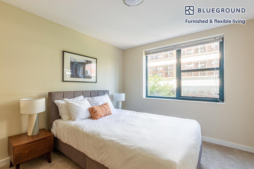Show up and start living from day one in Portland with this stylish two bedroom Blueground apartment. You’ll love coming home to this thoughtfully furnished, beautifully designed, and fully equipped Portland Downtown home. (ID #PDX18) The advertised rate of $4,520/month is the lowest available price, based on a 1 month(s) and 29 day(s) stay with a move-in date of April 8, 2031. If you’re looking for a 1-year stay, the rate is $4,780/month. Rates vary depending on the duration of stay, season, and other parameters. For exact pricing and additional pricing components, please visit our website and enter your desired move-in and move-out dates. The rate is applicable when billed upfront; it can be higher if billed in multiple payments. Brokers are welcome to reach out. Were you looking for an unfurnished lease? Try Blueground instead and upgrade from unfurnished to furnished living: - Furnished at rates comparable to unfurnished - No setup or furniture costs - save thousands - Move-in ready - save time, just bring your suitcase Designed with you in mind Gorgeous furniture, fully equipped kitchen, smart TV, and a premium wireless speaker are just a few of the amenities you’ll find inside this two bedroom apartment. Ideally located in Portland, you’ll find a lot to love outside as well. When you’re ready to relax, you’ll be happy to discover every Blueground bedroom comes with superior quality mattresses, fully stocked linens, and cozy towels. We handle everything so you can simply show up and start living. This apartment also offers in-apartment laundry. Sleeping arrangements Queen Bed, 63in/160cm Queen Bed, 63in/160cm Amenities Building amenities unique to this two bedroom apartment include an on-site: - BBQ Area - Dryer - Elevator - Washing machine - Lounge - Parking - Pets allowed Arrival and ongoing support The entire apartment is yours to enjoy! Throughout your stay, you’ll have access to our Client Experience team through the Blueground App. You can schedule additional cleanings, submit maintenance requests, and view our neighborhood recommendations with just a few taps. We’ll share all details upon confirmation of your stay. Other things to note Building amenities may have an extra cost. This Blueground apartment has flexible lease options, allowing you to book it for one month, a year, or more. Pets are welcome, though weight limits and breed restrictions apply and may incur fees. Parking is offered based on availability and is subject to a fee. We take great pride in ensuring every photo displayed is shot in our own units with our actual furnishings. That said, we regularly refresh our decor and furniture arrangement, which may differ from what’s pictured. [SI]