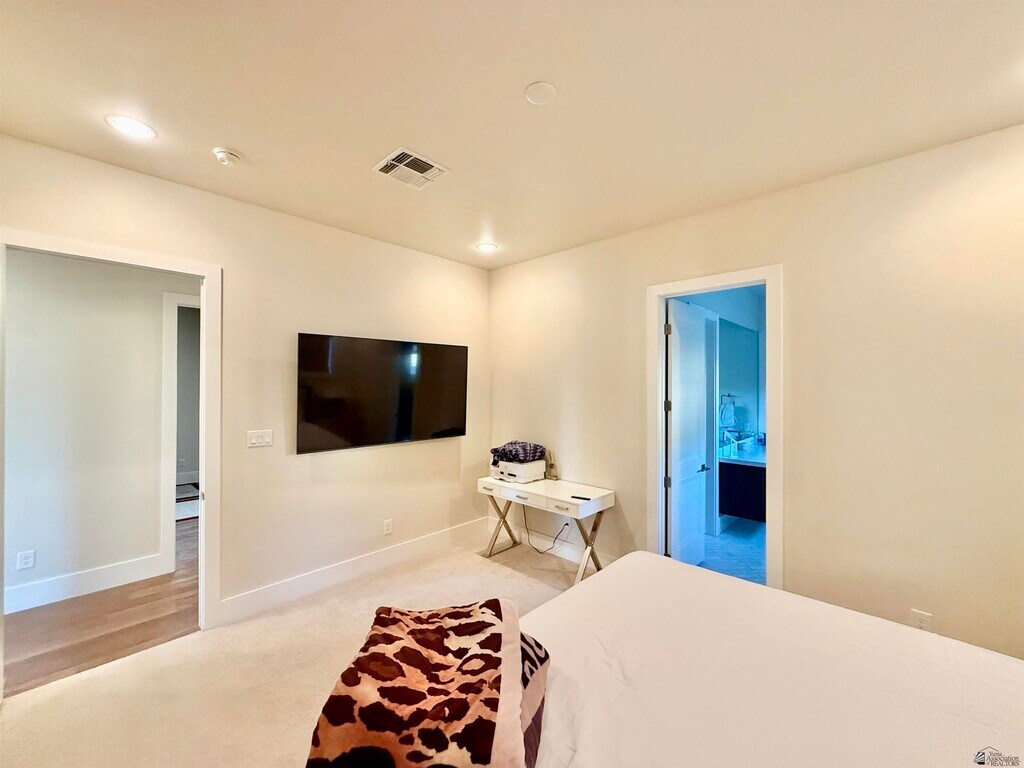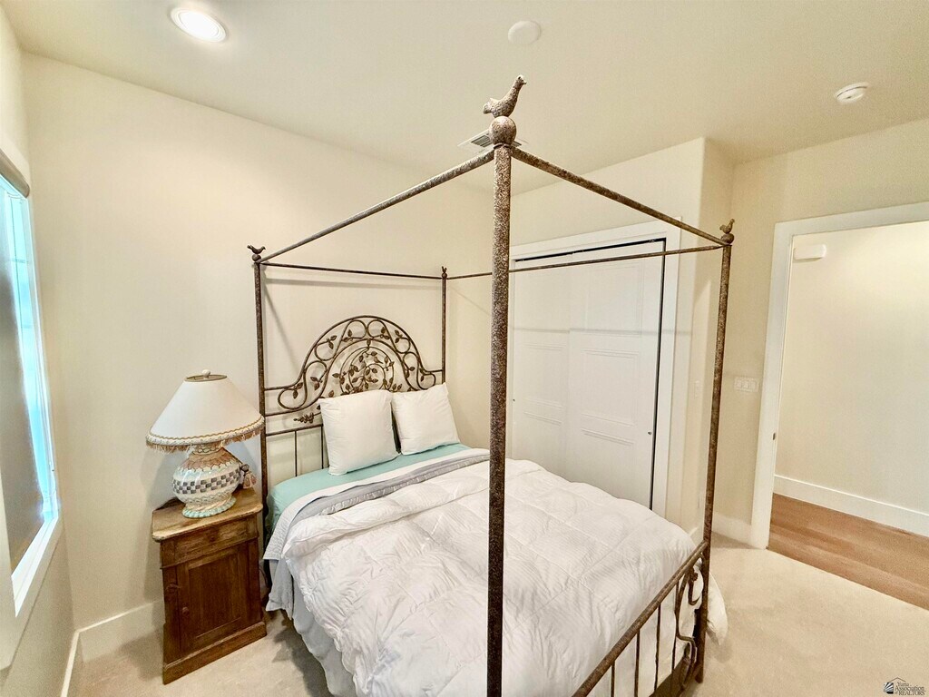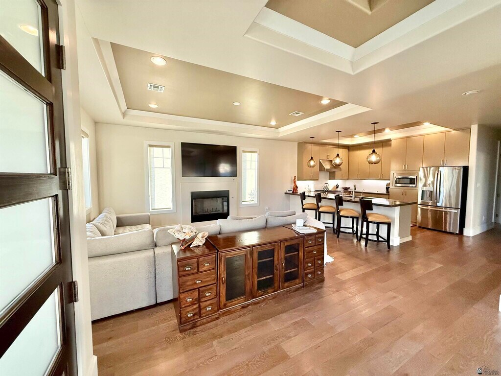 Extremely perfect 2019 custom built home on a ideal corner lot. Soaring coffered ceilings in main living areas welcome you into the entry way and everywhere inside. Well thought out floorplan offers a large open kitchen with custom cabinets, solid surface tops and commercial grade appliances. Breakfast bar has enough room for everyone! Large laundry room features pull out drawers as well as tons of storage. Durable hard flooring throughout with plush carpets in bedrooms. Custom electric shades make enjoying the natural light a breeze. Master suite features a dream bathroom with walk in glass shower, freestanding soaking tub, oversized vanity with great storage and a giant walk in closet. Wonderful under truss patio has views from the master suite, kitchen and living room as well as the dining room. Oversized 617 square foot garage has plenty of room for both cars and tons of other storage. The lush front yard just adds to the curb appeal of this beauty, backyard has low maintenance landscaping and great privacy.