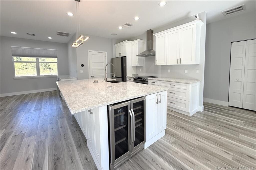 Welcome to this stunning new construction tucked away in the peaceful charm of Fellsmere,Florida. Thoughtfully designed and loaded with high-end upgrades,this home offers the perfect blend of modern luxury and everyday comfort. Step inside to find quartz countertops,sleek finishes,and an open,light-filled layout ideal for both entertaining and relaxing. The custom-designed closets provide exceptional storage,while the spa-inspired primary suite features a luxurious soaking tub and LED backlit mirrors for a true retreat feel. The gourmet kitchen is equipped with Samsung Bluetooth-enabled appliances,seamlessly blending style and smart-home convenience. Impact windows and doors offer peace of mind,energy efficiency,and durability,all while enhancing the home’s clean,contemporary aesthetic. Quietly situated yet close to everything Fellsmere has to offer,this gorgeous new build is truly move-in ready and designed for modern Florida living. MLS# M20054178