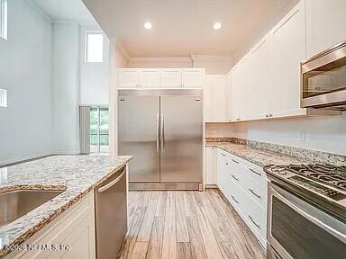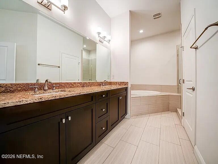 Beautiful 3-bedroom 2.5 bath townhome located in Portofino in Duval County. Open concept home with tile plank flooring in main living areas and master bedroom. Living/dining room have vaulted ceilings,bypass sliding glass doors to your enclosed lanai with pavers. Kitchen has large stainless-steel fridge,gas stove,center island,pantry. Primary bedroom is located downstairs with walk-in closet. Primary bathroom has walk-in shower,garden tub,dual vanities. Half bath is also located downstairs for your guests. Upstairs you will find a loft area,laundry room and 2 carpeted bedrooms one of which has a balcony. Property is owner managed,no pets. Hoa resp. for water,sewer and lawn care. Rent includes pool access. Tenant resp. for salt in water softener and pest control. Close to shopping and major roadways. MLS# 2125853