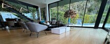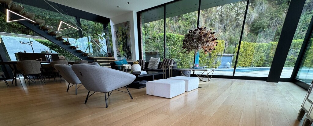 Available immediately! Fully furnished and turnkey for short and midterm rental (1-4 months). This ultra-hip Hollywood Hills retreat offers approximately 4,200 sq ft of stylish living space with 3 bedrooms and 4–5 bathrooms. Designed by a world-renowned fashion designer and artist, the mid-century contemporary residence features soaring ceilings, walls of glass, and custom lighting that seamlessly connect indoor and outdoor spaces. The home boasts a chef’s kitchen, hardwood floors, central heating and air, and a dramatic lava-rock fireplace, while the private heated pool, fountain, and expansive upper-level lounge deck showcase breathtaking city and canyon views. A separate guest or in-law suite with a kitchenette and half bath provides flexibility for visitors or staff, and the property also includes a two-car garage. Ideally located just one block from Sunset Plaza’s vibrant restaurants, high-end shopping, and nightlife, this gated oasis combines ultimate privacy with unparalleled access to the best of Los Angeles.