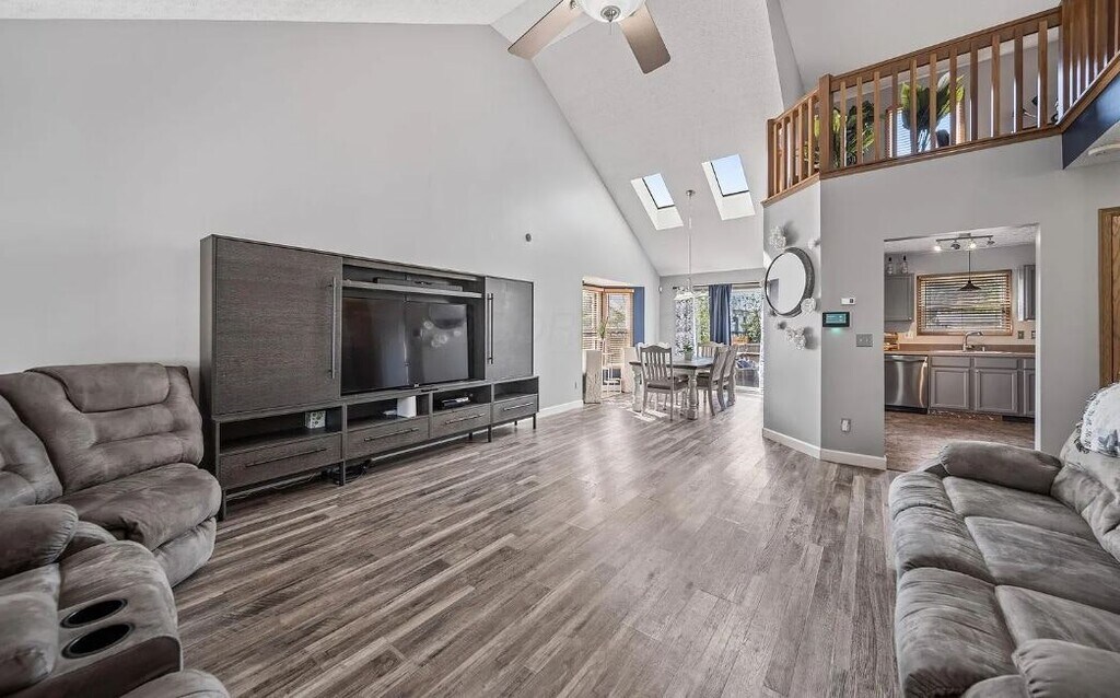 Welcome to this charming 3-bedroom, 2.5-bath home in the desirable Trabue Woods subdivision, part of Hilliard School District. Step inside to an open floor plan featuring cathedral ceilings, a first-floor owner's suite with private bath, and a convenient first-floor laundry. Upstairs, you'll find an airy loft and spacious bedrooms, all with walk-in closets. The finished basement offers a recreation room for entertaining or relaxing, while outside you'll enjoy a fenced backyard and deck, perfect for gatherings. You'll love having Trabue Woods Park right in the neighborhood, offering a perfect spot to relax or play.