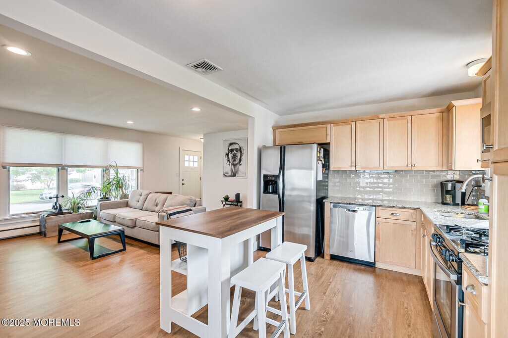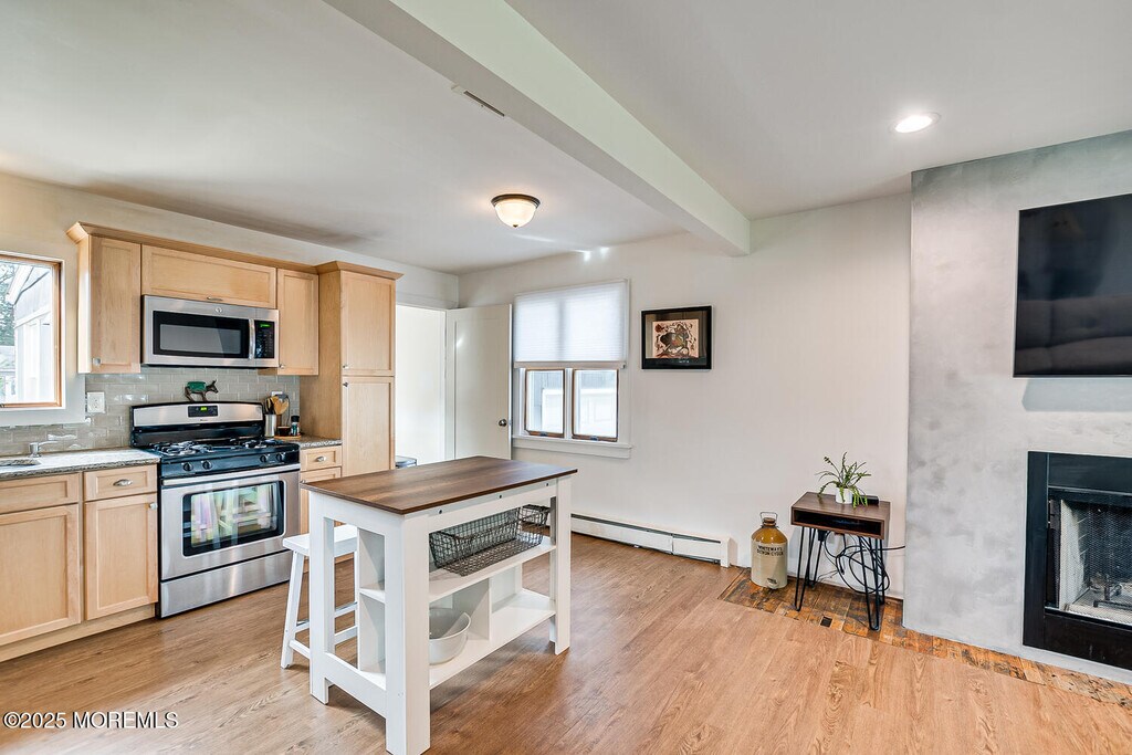 Year-Round Rental in a Fantastic Neighborhood. This beautifully updated home features recent paint inside & out,with modern,stylish décor thruout. Enjoy plenty of natural light,newer Jeld-Wen doors,recessed lighting,and ceiling fans. Laminate flooring runs thru the main living areas,with cozy carpeting in the bedrooms. A stunning,artisan-crafted wood-burning fireplace anchors the living space. The open-concept kitchen offers SS appliances,granite countertops,& a subway-tile backsplashin a clean,neutral palette. A newer LG W\D adds convenience. Outside,you'll find a large fenced-in backyard with a patio & storage shed,plus an oversized garage. A newer roof provides peace of mind. Perfect for a single of professional couple. Pets maybe considered. Avail move in 12/1/25
