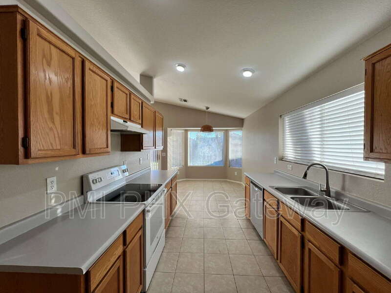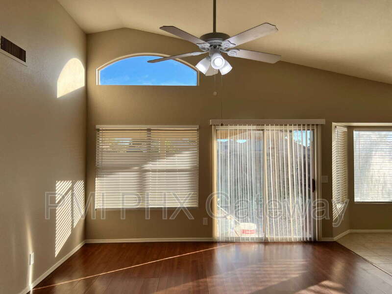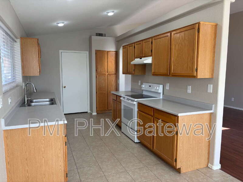 This lovely 3-bedroom, 2-bath home features wood flooring, a spacious great room, and an inviting eat-in kitchen. The master suite includes a walk-in closet, double sinks, and a walk-in shower for added comfort. Enjoy outdoor living with a covered patio overlooking a lush grass backyard—perfect for relaxing or entertaining. A 2-car garage provides convenience and extra storage. Move-in ready and located close to shopping, dining, and great schools! Deposit: is equal to one month’s rent. HOA: Yes Appliances: All built-ins provided and warranted. (Any personal property items, such as washer/dryer or refrigerator, if provided, are in AS-IS condition.) Agency Disclosure: PMI Phx Gateway and its agents represent the Owner/Landlord only in the transaction. Should prospective tenant(s)/tenant(s) wish to seek representation, they need to do so independently. Application Fee: $60.00 per applicant, non-refundable. Other Charges: A one-time non-refundable administration fee of $295 is charged at your lease signing to be paid with move-in funds. Monthly rent is to be paid electronically with a third-party fee for processing from $4 to 4% depending on how you pay. Lease has a $125 re-key fee that is charged at the end of your lease term and taken from security deposit. Pets: Allowed Monthly individual pet fee is $35-$65/month depending on pet screening score. Landscaping is tenant responsibility to maintain. Pool Maintenance is tenant responsibility if there is a private pool. How to View: Please schedule online through our website available rentals. (We are unable to schedule viewings via email.) How to Apply: On-line at . REALTOR® Equal Housing Opportunity. PMI Phx Gateway ***The information contained in this ad is accurate to the best of our knowledge. PMI Phx Gateway is not responsible for any error or omission in the wording or content of this information. ***