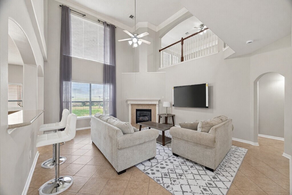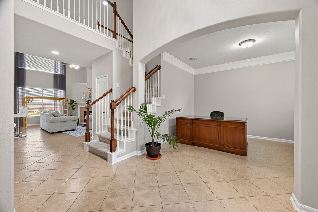 Welcome to this beautiful 5-bedroom,3.5-bath residence offering 3,530 sq. ft. of thoughtfully designed living space in a quiet gated community. Blending elegance,comfort,and modern updates,the home features soaring ceilings,extensive crown molding,and a bright open-concept layout filled with natural light. The expansive family room is ideal for entertaining,while the upstairs game room provides the perfect space for relaxation and fun. A dedicated private office makes working from home easy and convenient. Recent upgrades include a new roof,new AC system,and solar panels to be paid off at closing for added energy efficiency and peace of mind. Step outside to a spacious backyard,perfect for gatherings or unwinding outdoors. With generously sized,beautifully finished bedrooms throughout,this home offers refined living with today’s modern conveniences. MLS# 36775614