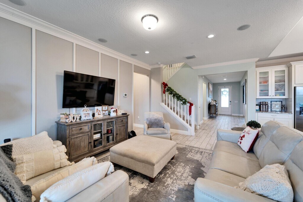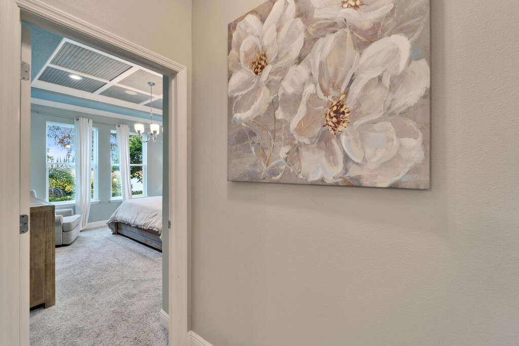 Welcome to this stunning 3-bedroom, 2.5-bathroom home in the desirable Reserve at Pradera Community. The First floor features a luxurious Primary Suite with a Spa-like bathroom, including Dual Vanities, a Soaking Tub, a separate Walk-In Shower, and an expansive Custom Walk-in Closet. The open-concept living area boasts Vaulted and Tray Ceilings, crown molding, and ample natural light. A dedicated THEATER room provides the perfect setting for movie nights with family and friends. Upstairs, you'll find TWO additional Bedrooms with luxury Built-Out Closets, a versatile media room that can serve as a FOURTH bedroom, and a LOFT space ideal for a home OFFICE or library. The home is packed with upgrades, including an in-home surround sound system, a brand-New AC 2025 and water heater for your comfort. The oversized TWO-car garage comes equipped with Custom storage unit cabinetry to meet all your organizational needs. Outside, enjoy the serene WATER views, and the beautiful mature landscaping. A New roof, installed in December 2024, offers peace of mind, while the community's Resort-Style Amenities include a pool, playgrounds, sports fields, fitness stations, and walking trails. This Pet-friendly home allows one small pet. Conveniently located near shopping, dining, and entertainment options, with easy access to Amalie Arena, Raymond James Stadium, downtown Tampa, and MacDill Air Force Base. Don't miss the opportunity to make this exceptional home yours—call today to schedule a showing!