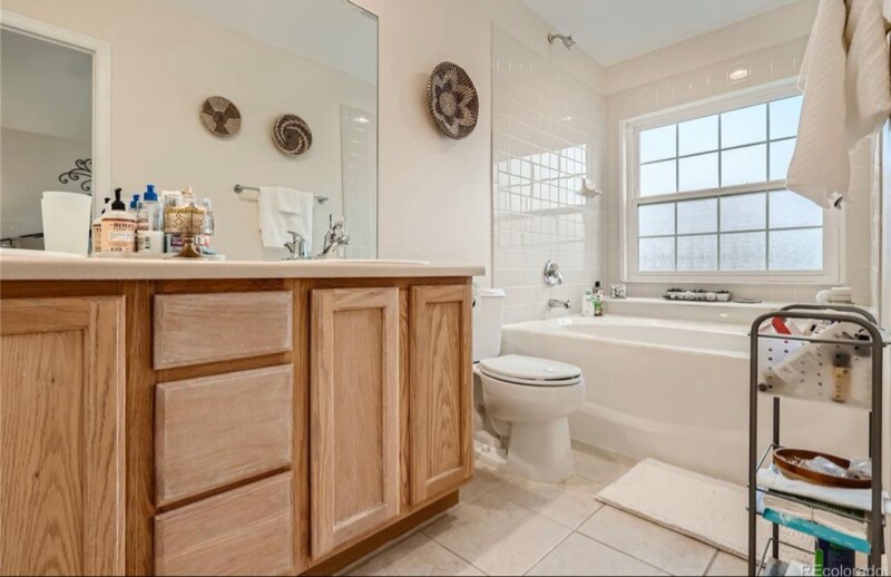 Property Id: 2260620 This Highlands Ranch townhome is beautifully remodeled and designed. Walk in and feel the comfort, cleanliness and appeal of a new construction home. The main level hosts the kitchen (granite counter tops), half bathroom, laundry and living room. Off the living room is the door to the fenced in patio/small yard including a private shed! The kitchen is beautiful in fresh white cabinets and granite countertops. Plantation shutters bring together the look of this main level. Upstairs are two bedrooms with private bathrooms and a small loft area to enjoy reading, lounging or playing in. The primary suite is elegant and grand with a window seat overlooking the community pool and a large bathroom with a soaking tub. The closets have been expanded in the second bedroom giving the illusion of two primary suites! This unit backs to the community pool. Attached to the unit is a one car garage, perfect for convenience in this Colorado weather!