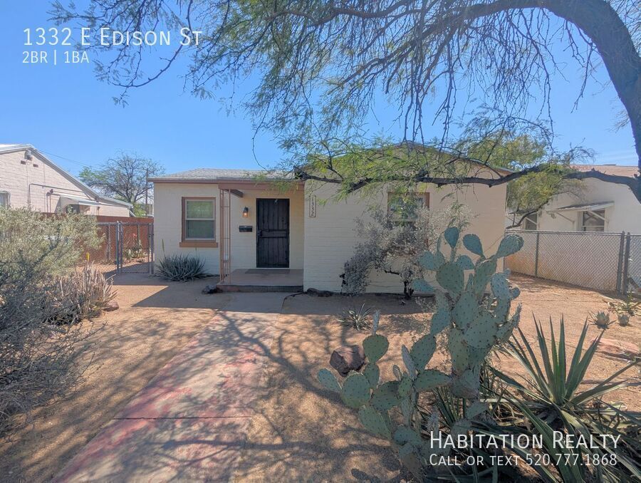 *****We only accept applications at Please submit your application only once. It can be transferred to any of our active listings for up to the next 30 days!***** This beautifully remodeled home in Jefferson Park features desert landscaping along the front and backyard, built-in shelving and ceramic tile flooring, carpeted bedrooms, an Arizona room that can be used as an office or study room, and a separate laundry room with extra shade. The large enclosed backyard hosts a well-shaded patio and plenty of outdoor space, and you can view mountains from the front yard! The Jefferson Park neighborhood is a vibrant historic urban neighborhood, with very walkable and bike-friendly streets - just minutes away from Banner-University Medical Center, and an easy walk or bike ride to shopping, dining, and entertainment! 1158 Square Feet 2 Bedrooms, 1 Bathroom Washer/dryer included Tile floors Office/Den Street Parking Fenced yard Refrigerator Stove/Oven University Area Patio Arizona Room Desert Landscaping Drying Rack Drip Irrigation System Security Alarm Carpet floors $2642 due at lease signing. This includes a $2142 refundable security deposit, $250 non-refundable cleaning fee, and $250 non-refundable leasing fee. First month's rent due one business day prior to move in. Tenants to arrange and pay for all utilities. Well-behaved and loved pets are welcome, with an additional $200 pet fee, subject to owner approval. We do charge a $55 per person application fee, and all potential tenants must pass a credit, criminal, and prior eviction screening. Professionally managed by Habitation Realty. Equal Housing opportunity, of course! Arizona Room Carpet Desert Landscaping Drip Irrigation System Drying Rack Security Alarm University Area