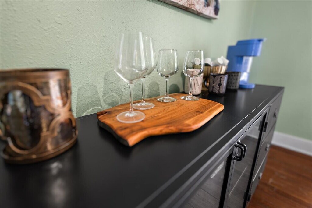 FULLY FURNISHED!! Belhaven Bombshell! This space offers elegance and charm. This 4-plex building, over 85 years old, is meticulously maintained with lots of charm and beautiful hardwood floors. Enter through a coded door and this particular unit is upstairs on the right. The large living room has plenty of seating with a large television on a desk that can be used for your laptop or gaming console. The dining room features a coffee bar (Keurig) with wine and martini glasses as well. The full kitchen contains a microwave and washer/dryer combo.