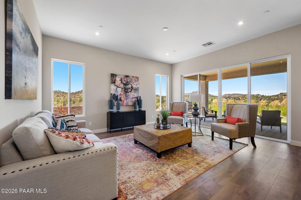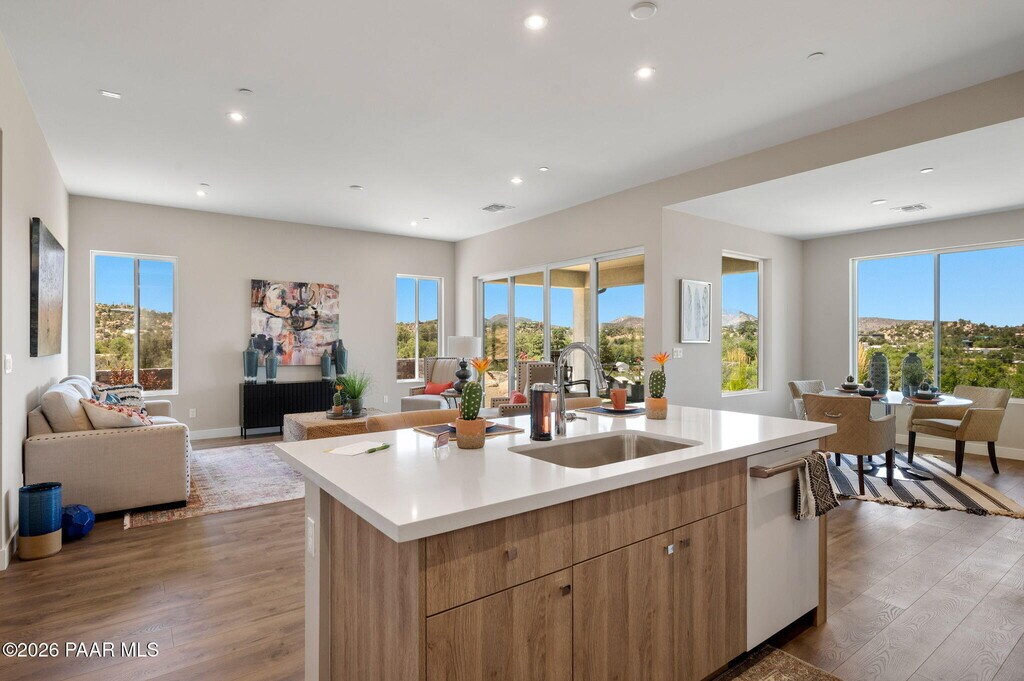 VIEWS VIEWS VIEWS New build home where innovation meets sustainability. This new home,nestled in the heart of Prescott,offers an exceptional blend of comfort and eco-conscious design,perfect for homebuyers seeking a balance between luxury and efficiency. Step inside this 1,649 sq ft sanctuary and be greeted by 10'ft ceilings in an open-concept that layout seamlessly connects the living area to the dining space and kitchen,creating an inviting atmosphere for both relaxation and entertainment. Imagine cozy evenings by the fireplace,enjoying the warmth and charm it adds to your new home. The floor plan includes two spacious bedrooms plus a den,providing versatile space for a home office or guest room. Home is located in the prestigious Preserve community close to downtown Prescott