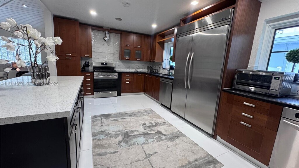 AVAILABLE 04/01/2026 SHORT TERM AT HIGHER PRICE --GORGEOUS fully furnished & ONLY FURNISHED gem in the heart of Hollywood Lakes, around the corner from Southlake and Hollywood downtown and 1/2 mile to the beach .This amazing 3BR+DEN /2BA with private pool, outdoor patio with sitting area,is fully furnished and totally remodeled. The great design makes this house a very unique one of kind for the the neighborhood. Very private and secluded with a fence and hedges amazing open kitchen/stainless steel appliances/huge living room with formal dining room overlooking the quiet backyard and pool is great for entertainment,l ots of light and great energy .Beautiful white glass floors throughout the house ,very easy to maintenance. Laundry room size washer dryer.2 king size beds and queen .For yearly rent tenant is responsible for electricity ,gas, water,landscaping and pool MLS # A11911387
