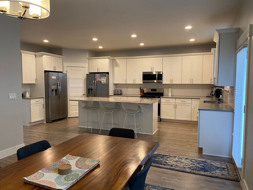 Beautiful home with a great layout and spacious floorplan. 5 bedrooms, one on the main floor and 4 on upper level. Each bedroom has its own attached bathroom. Kitchen has an open floor plan with lots of storage space, 2 refrigerators and an island with ample seating room. Fully furnished with modern decor! Close to downtown, restaurants, shopping, recreation and the Columbia River. Rent: $4500.00 Deposit: $6750.00 Lease Terms: 3months -1 year Laundry Facilities: Washer/Dryer Utilities: None Appliances: Refrigerator (x2), gas stove/oven, dishwasher, microwave. Yard Care: Tenant Responsible for the exterior care. To apply please visit: